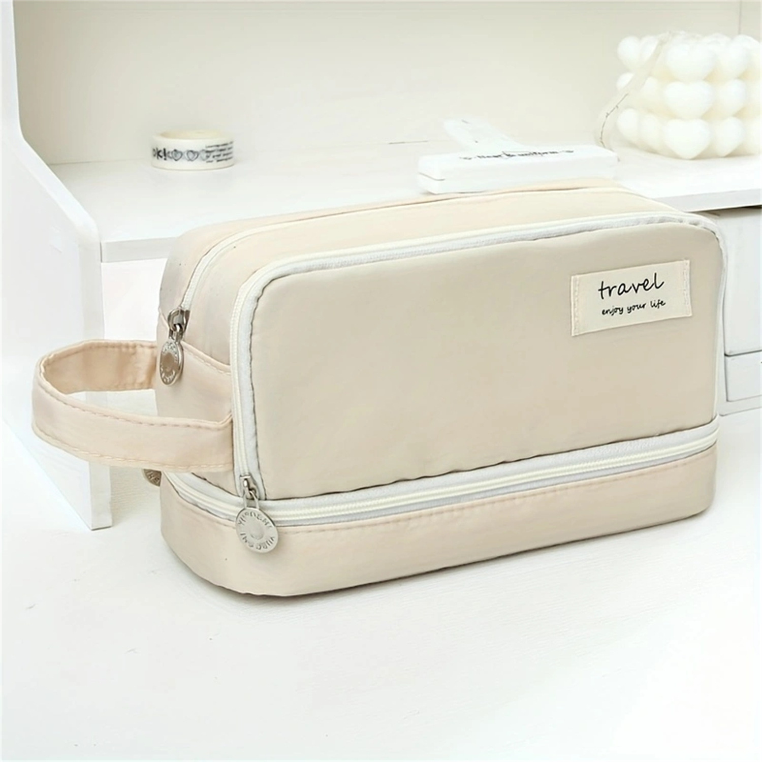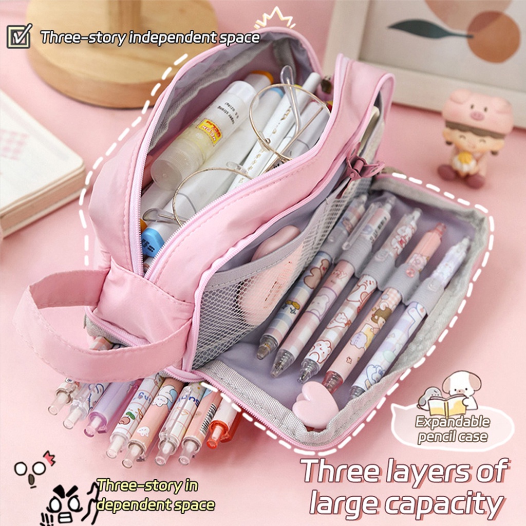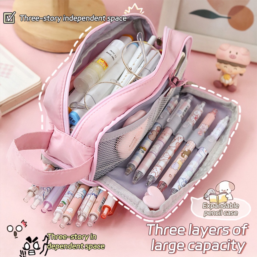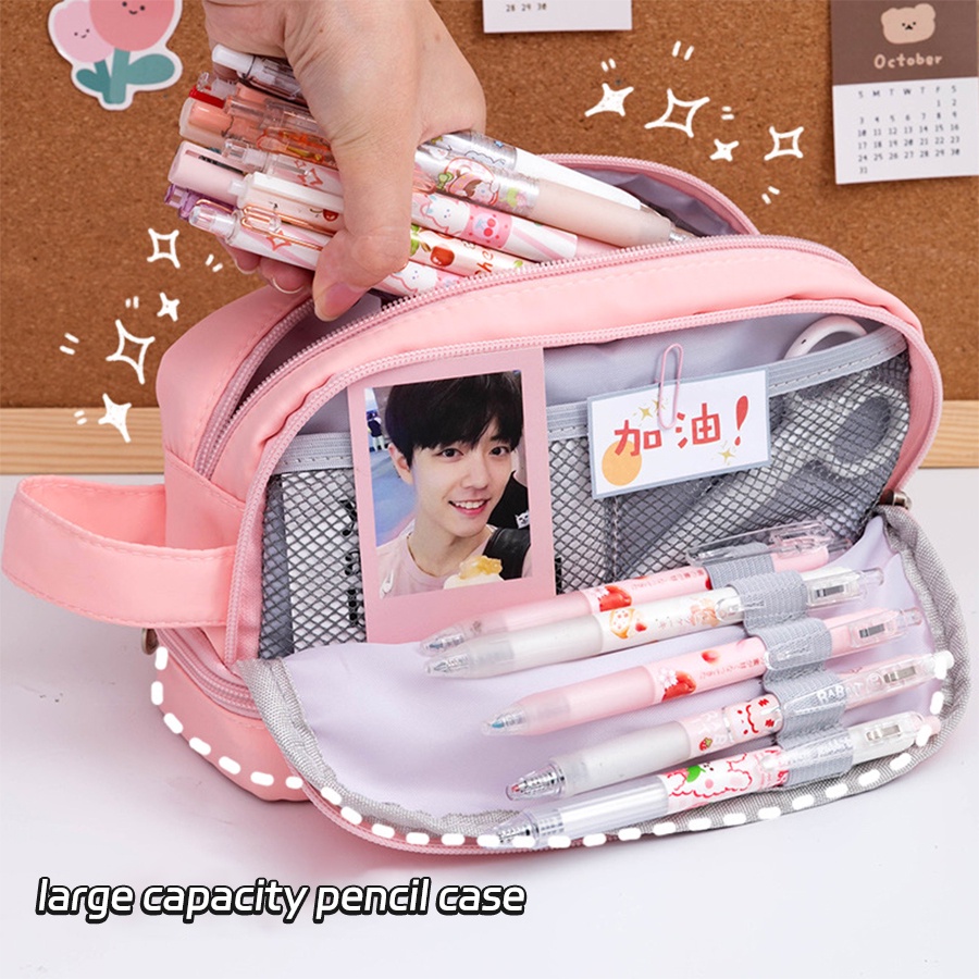 Large capacity Pencil Case Purple Canvas Pencil bag Cute Kawaii Pink Pencil Case Storage Bag Student Girl Stationery
