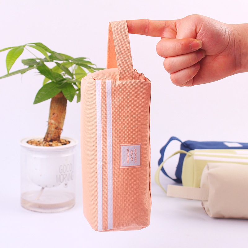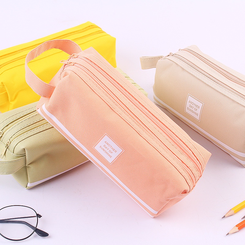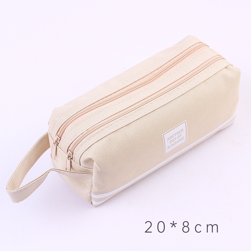 Large capacity canvas pencil case double layer simple small fresh pencil case stationery box