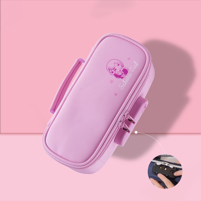 Large capacity pencil case Multi-layers zipper pouch with code Pencil Bag lock student bag for Office&School supplies stationery