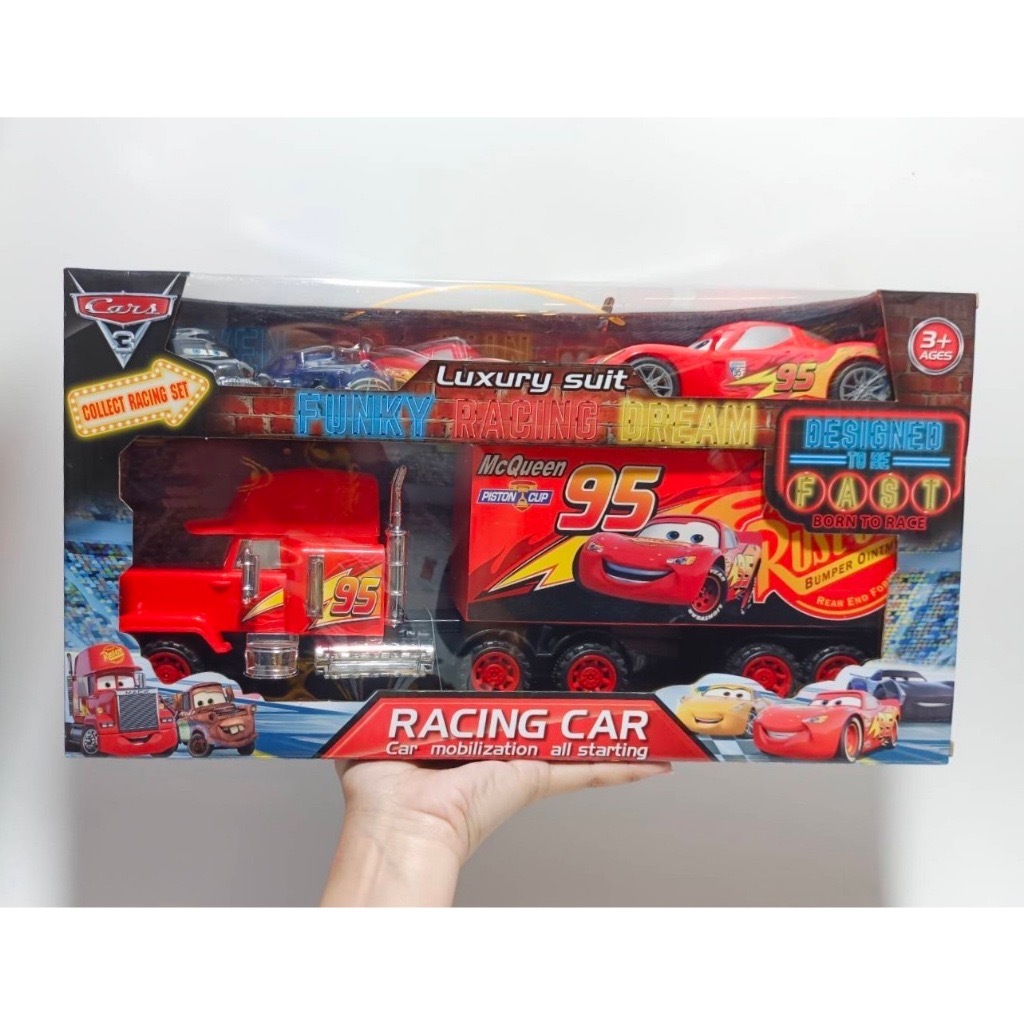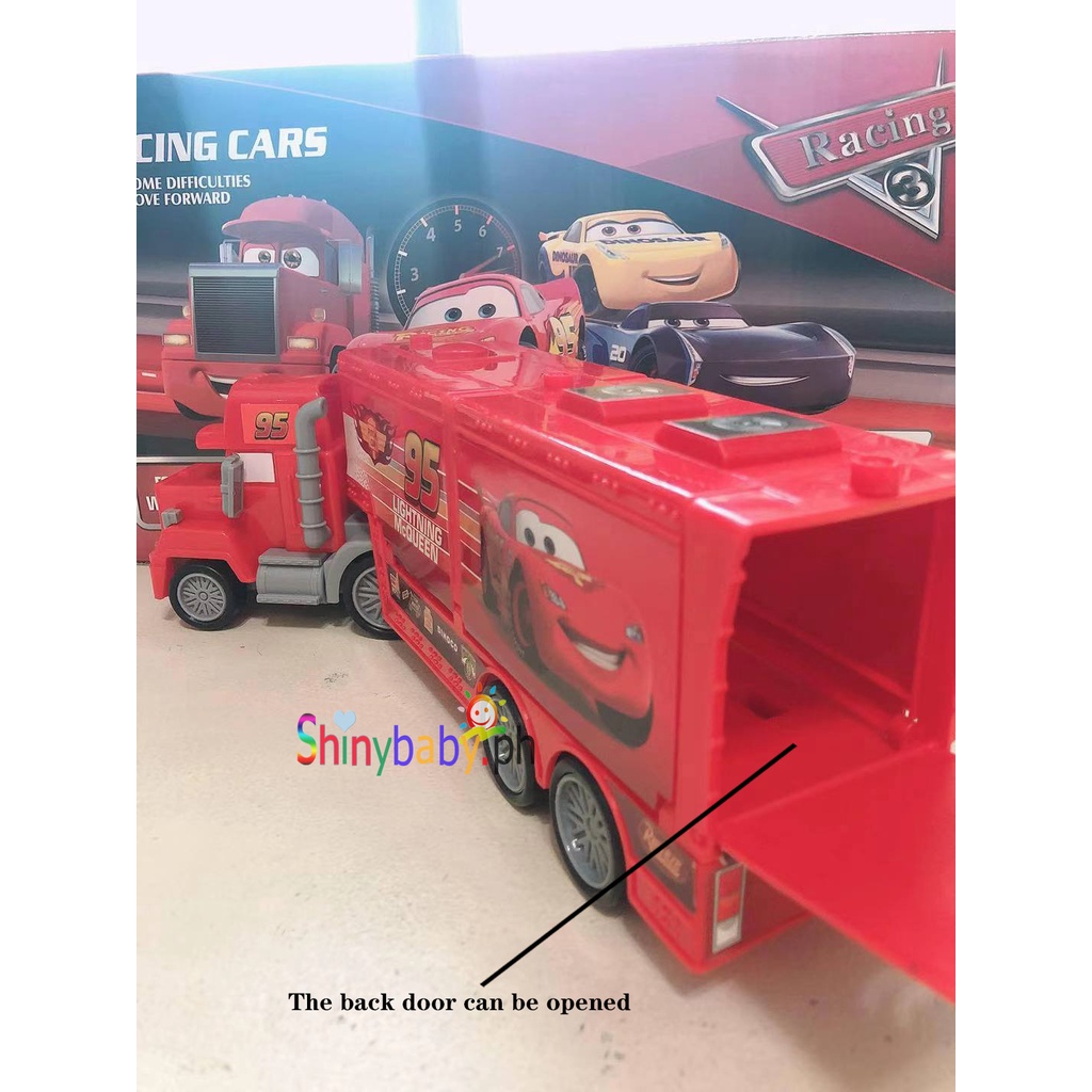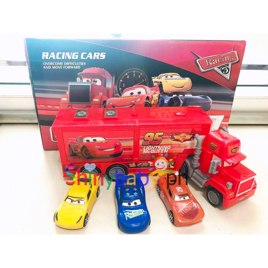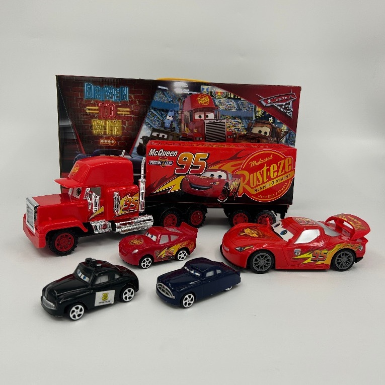Large inertia car with three small pull-back cars and container truck set toy cars
