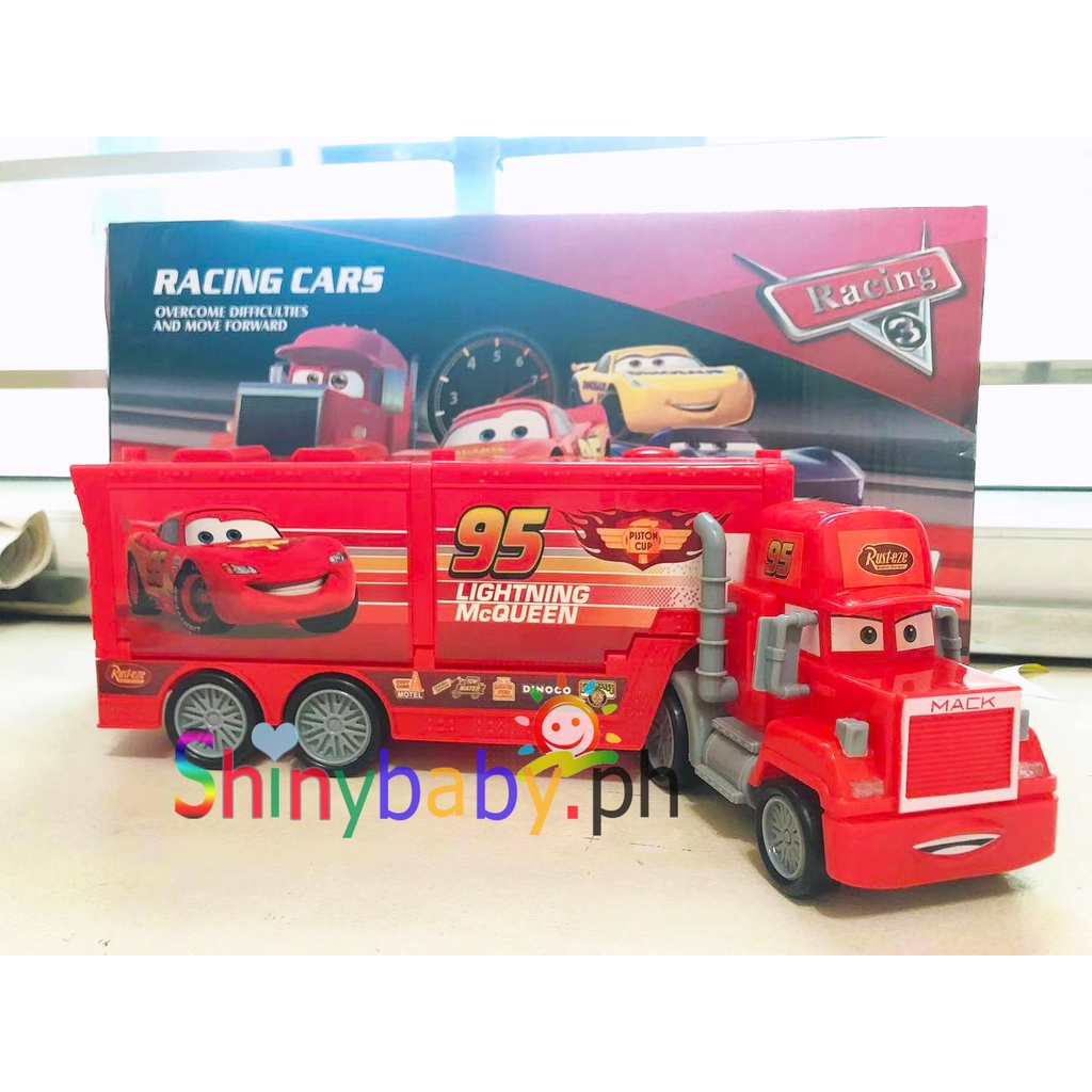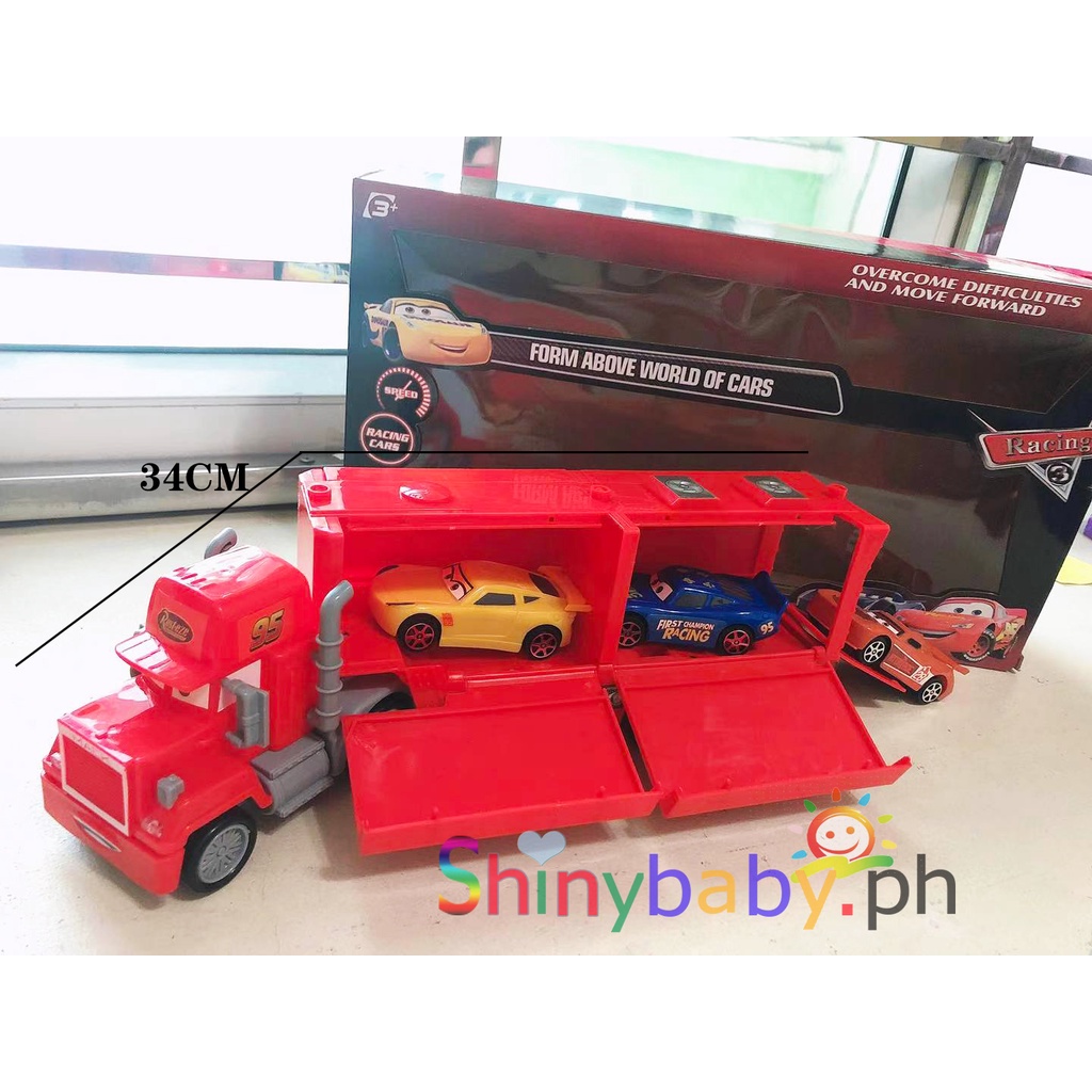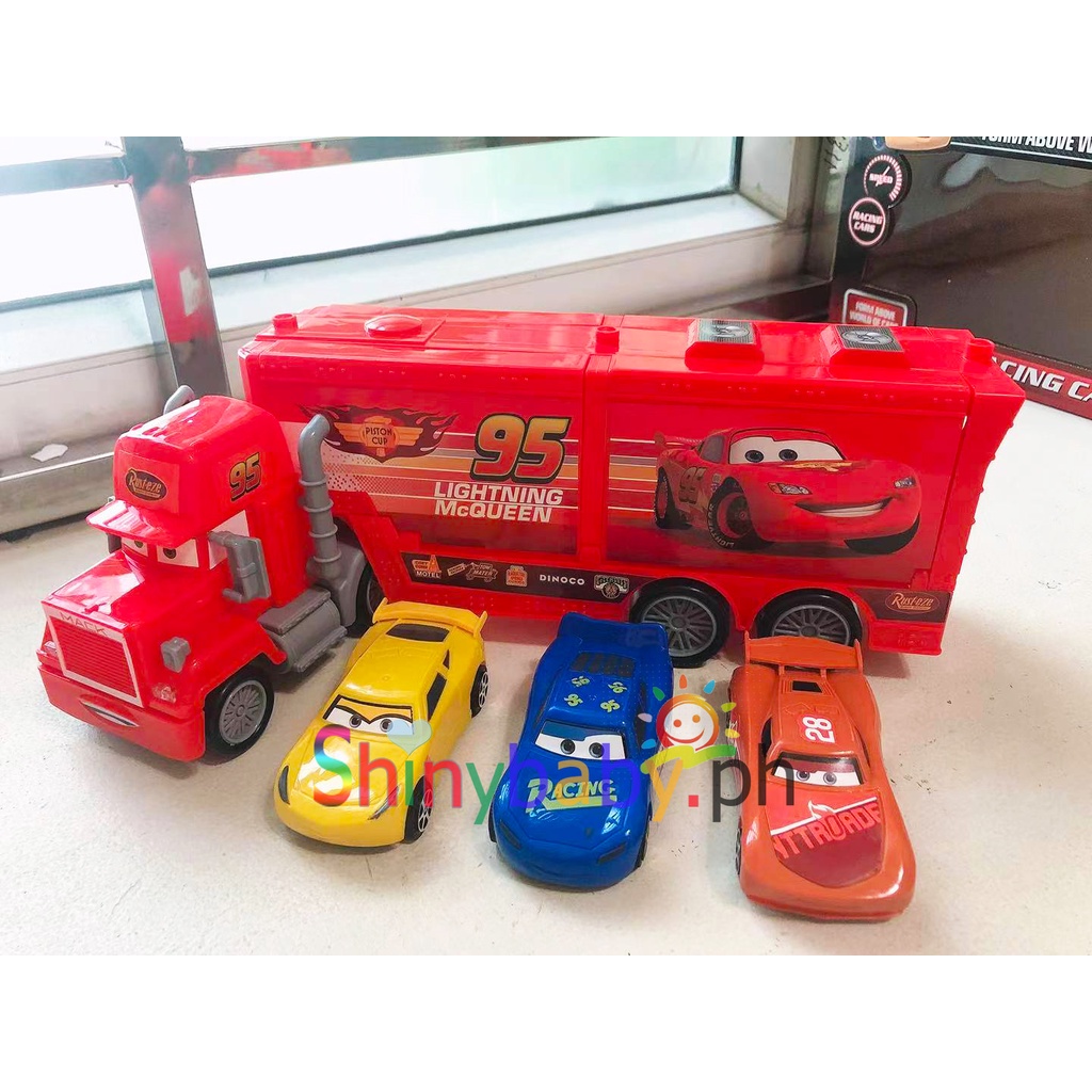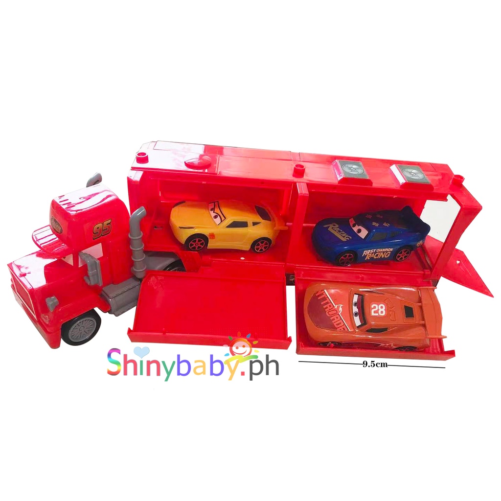 Large inertia car with three small pull-back cars and container truck set toy cars
