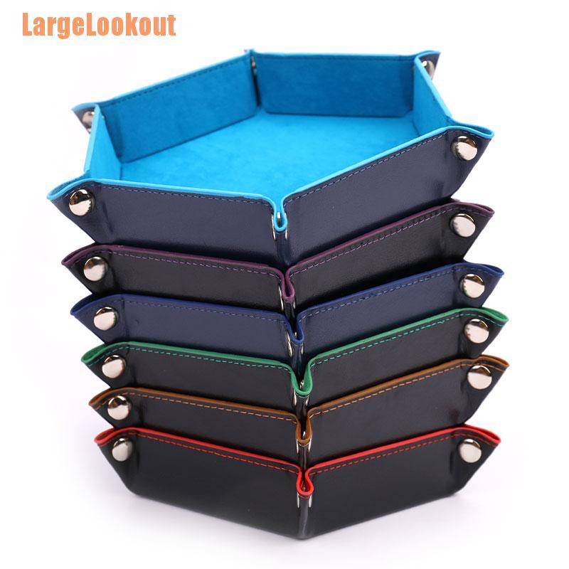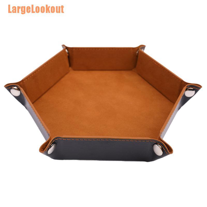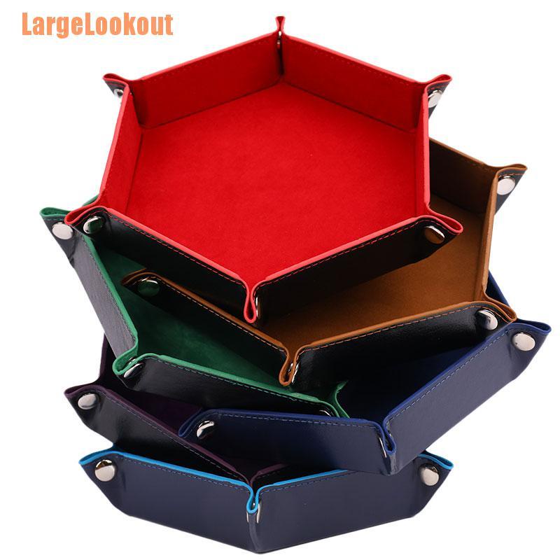 LargeLookout///Foldable Dice Tray Box Leather Folding Hexagon Square Tray Dice Game