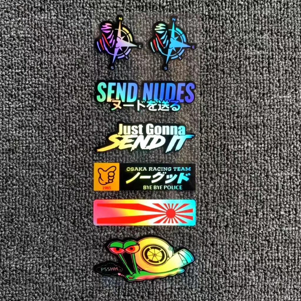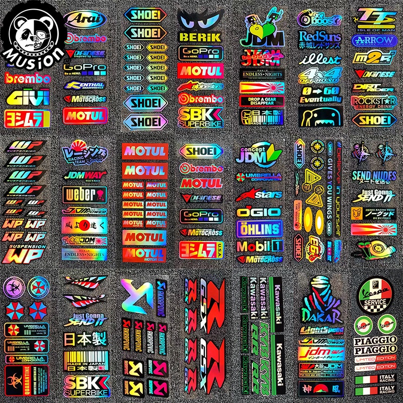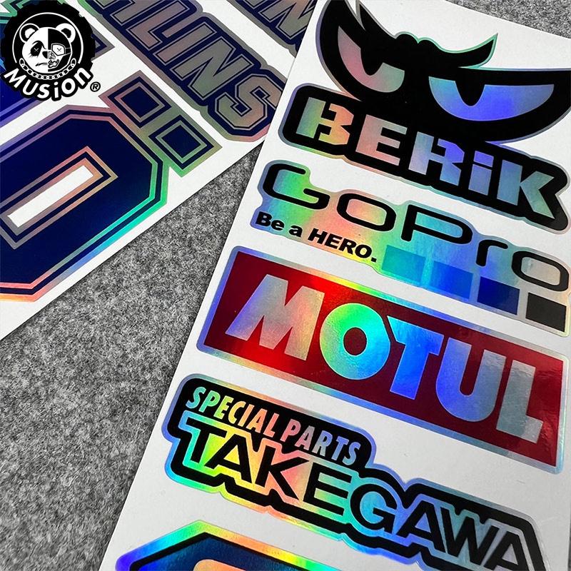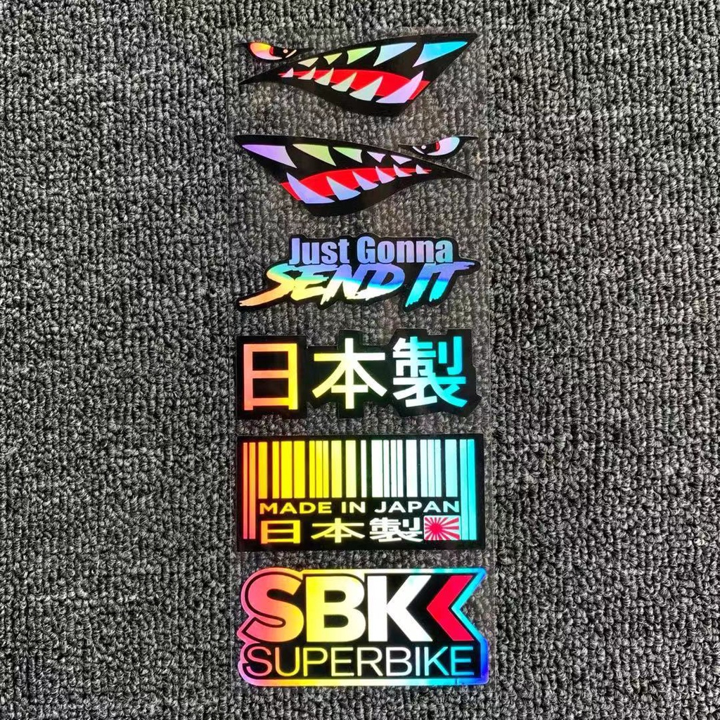 Laser Motorcycle Sticker Set Waterproof Holographic Style Helmet Decal Side Strip Fender Bike Sticker Car Decal