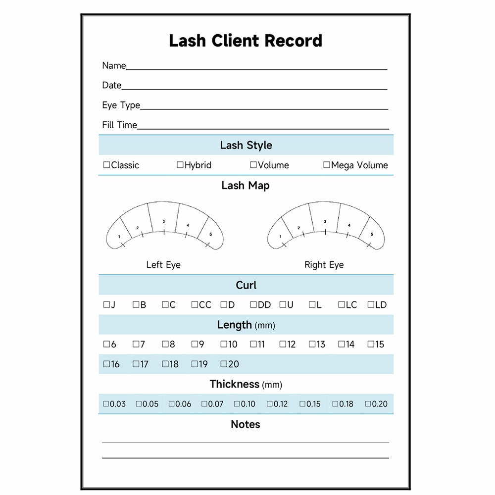 Lash Extension Client Record Book 40 pcs Detail Applying Eyelash Information Papers Lash Mapping Supplies
