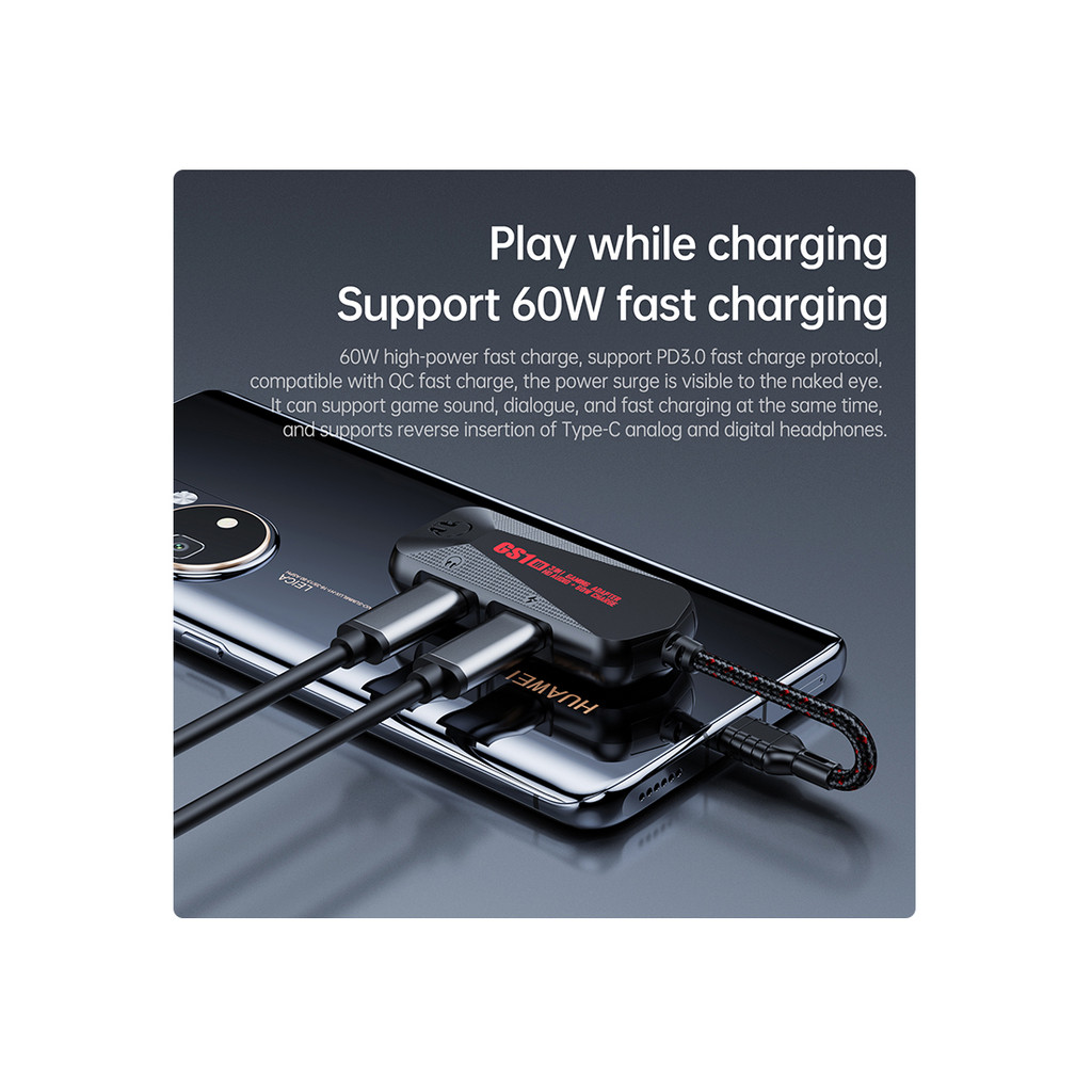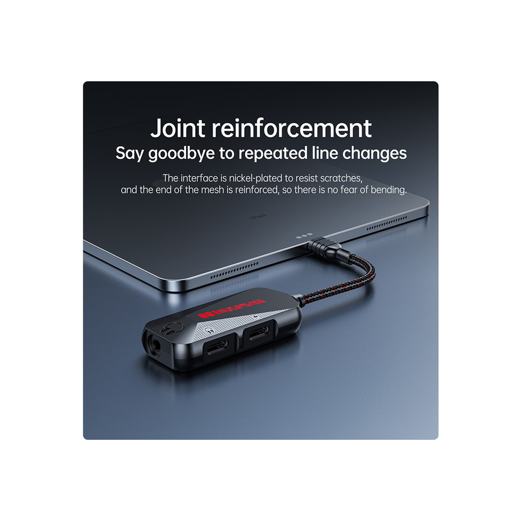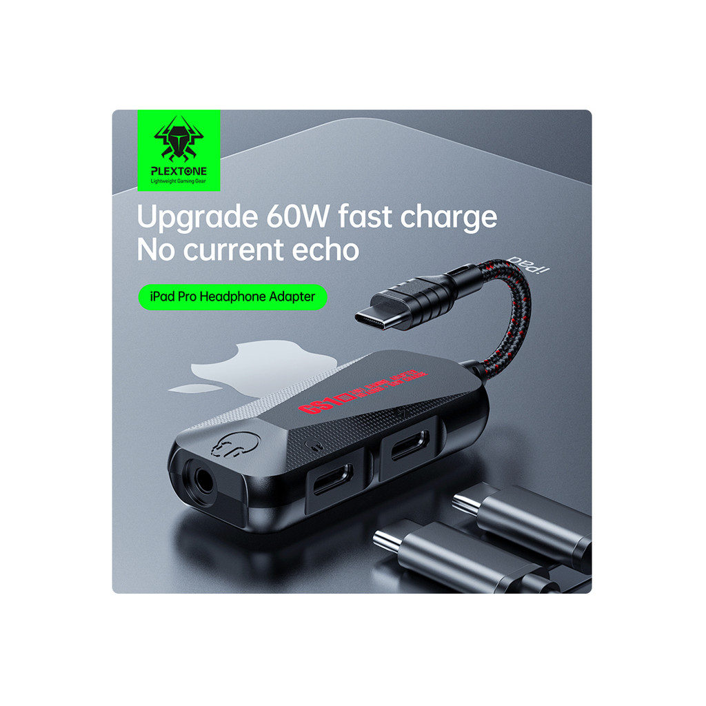 LatestGadget Plextone GS1-3in1 60W Fast Charge Type-C To 3.5mm+Type-C Straight Plug Adaptor