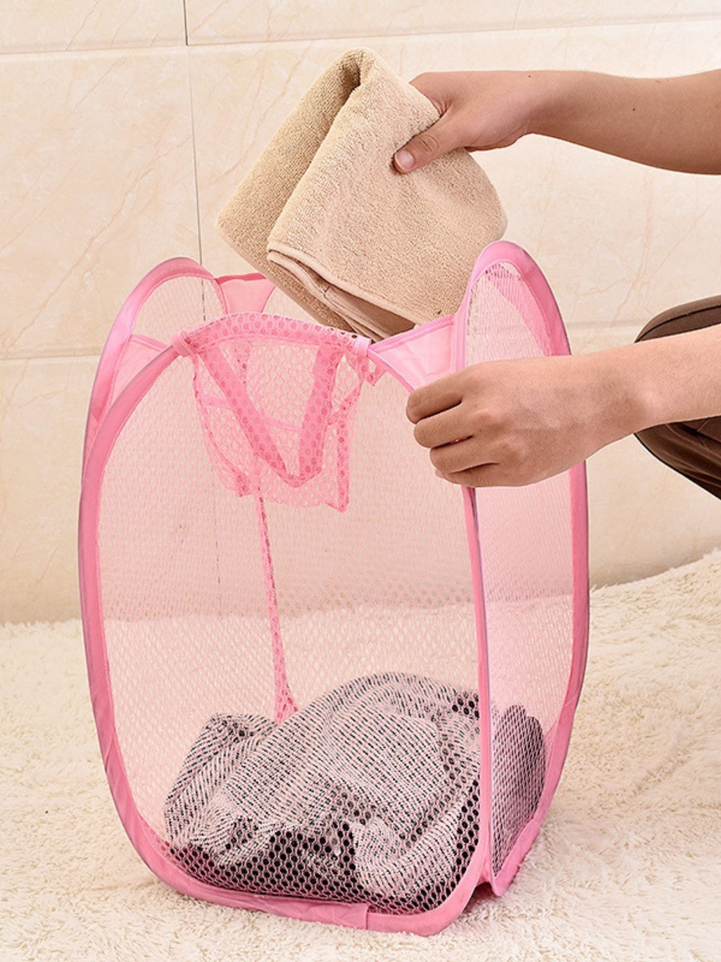 Laundry Basket Folding Pop Up Clothes Hampers With Durable Handles