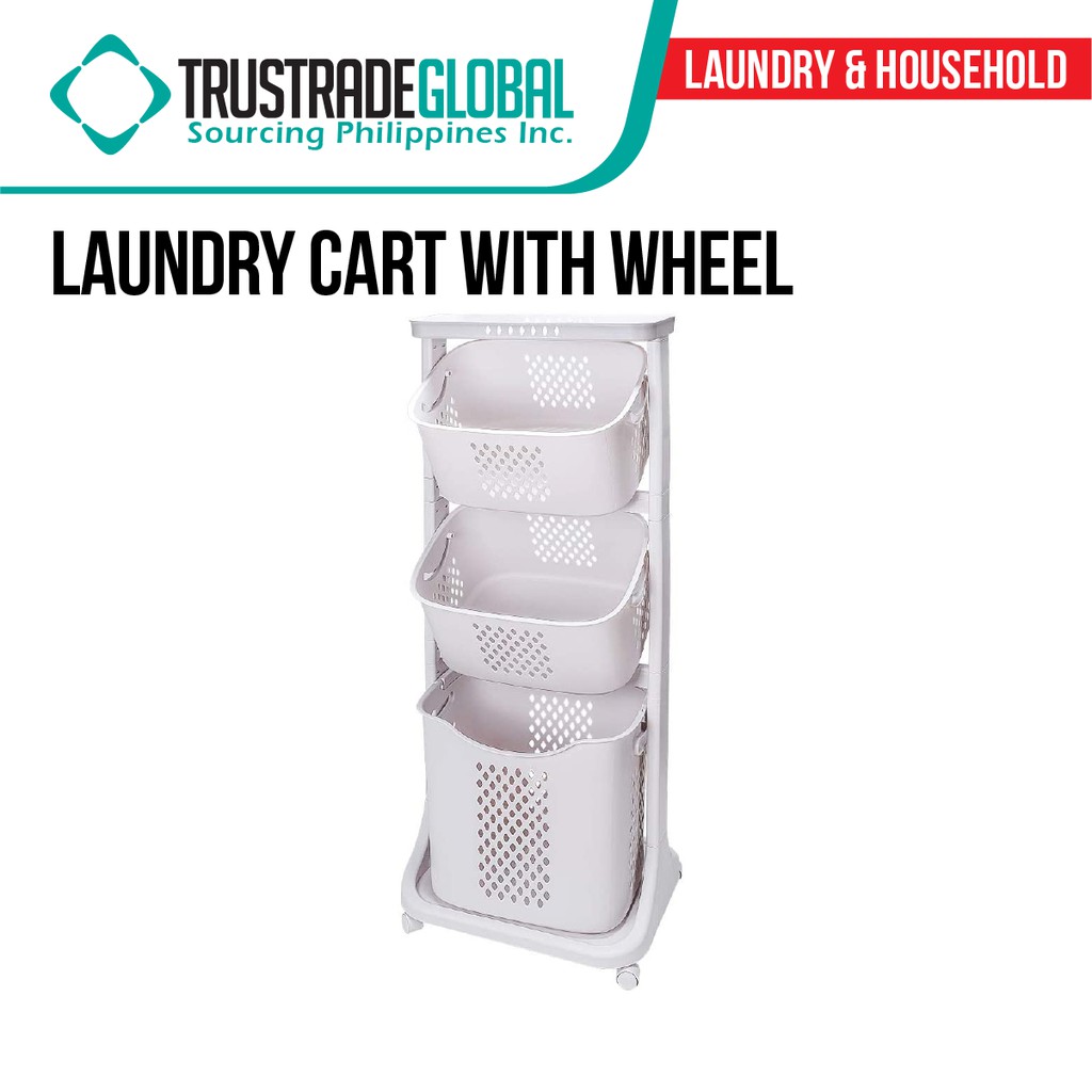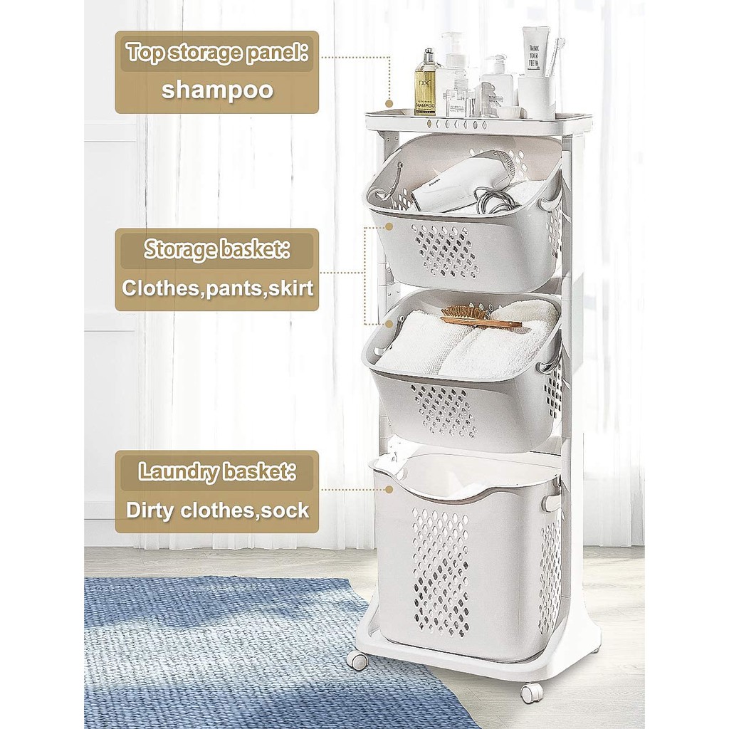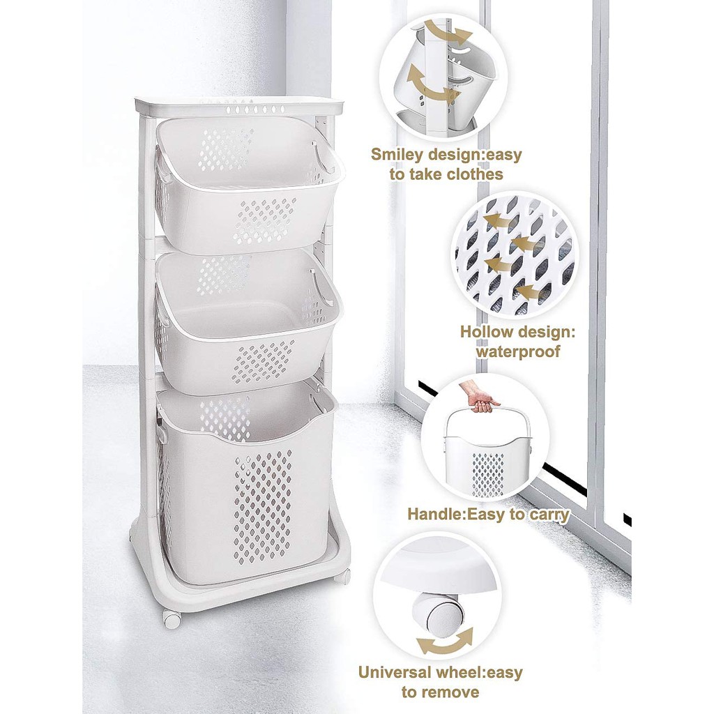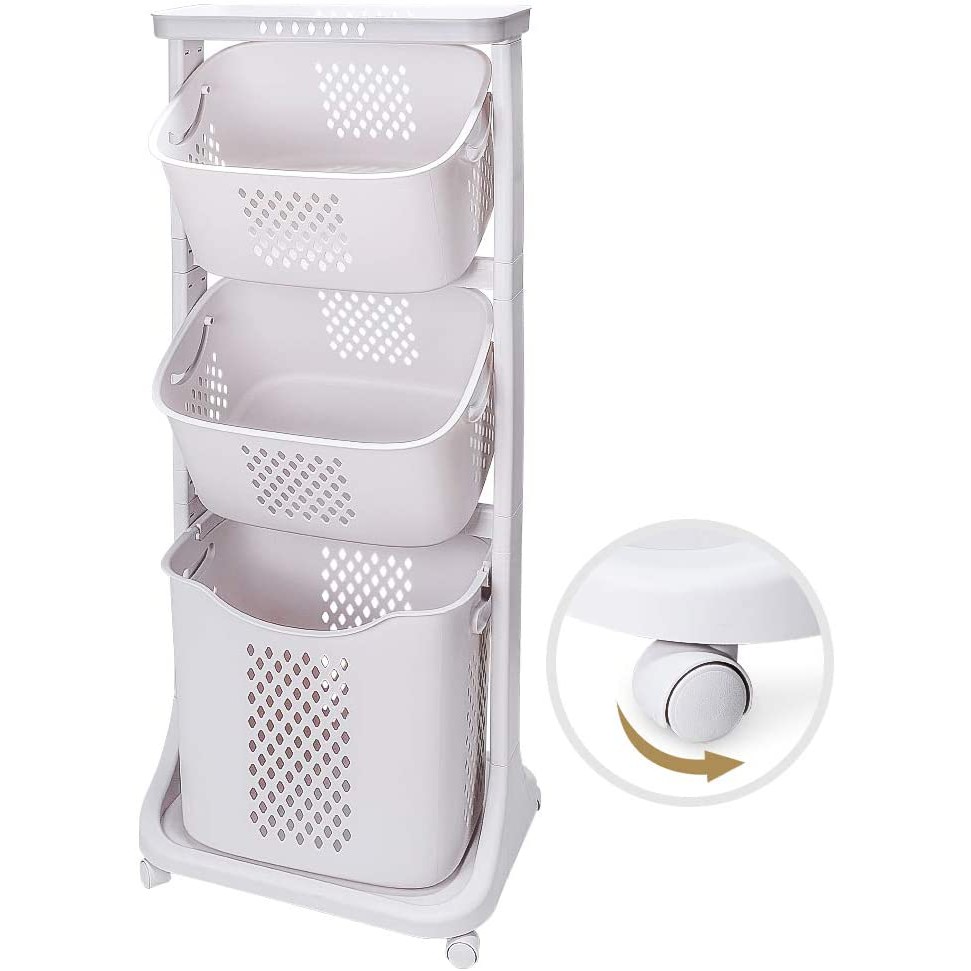 Laundry Cart with Wheel/3 Tier Laundry Utility Trolley Cart Shelf Storage Rack Organizer with Wheels