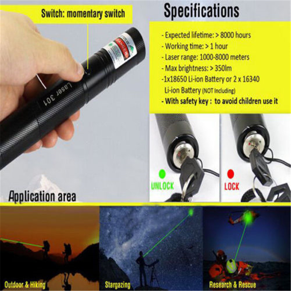 Lazer Laser Pointer Pen 10 Miles Range 532nm Green Laser Pointer Light Pen Visible Beam High Power