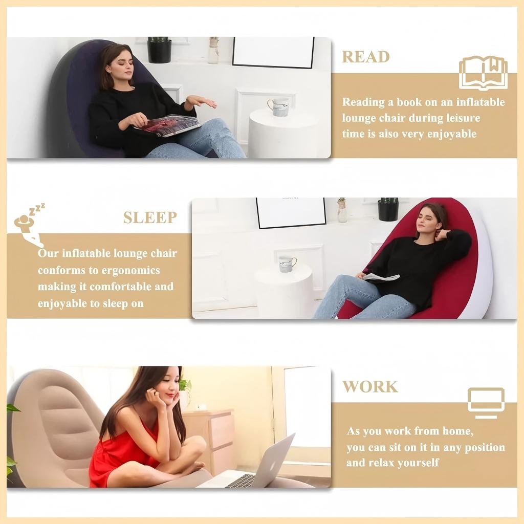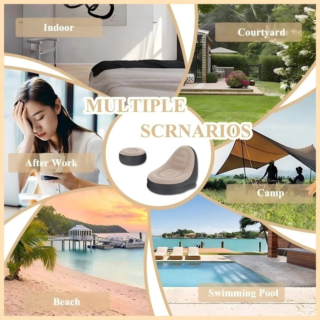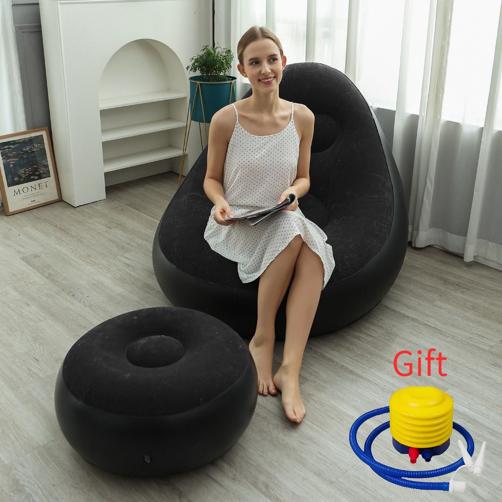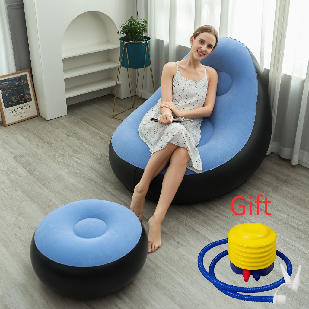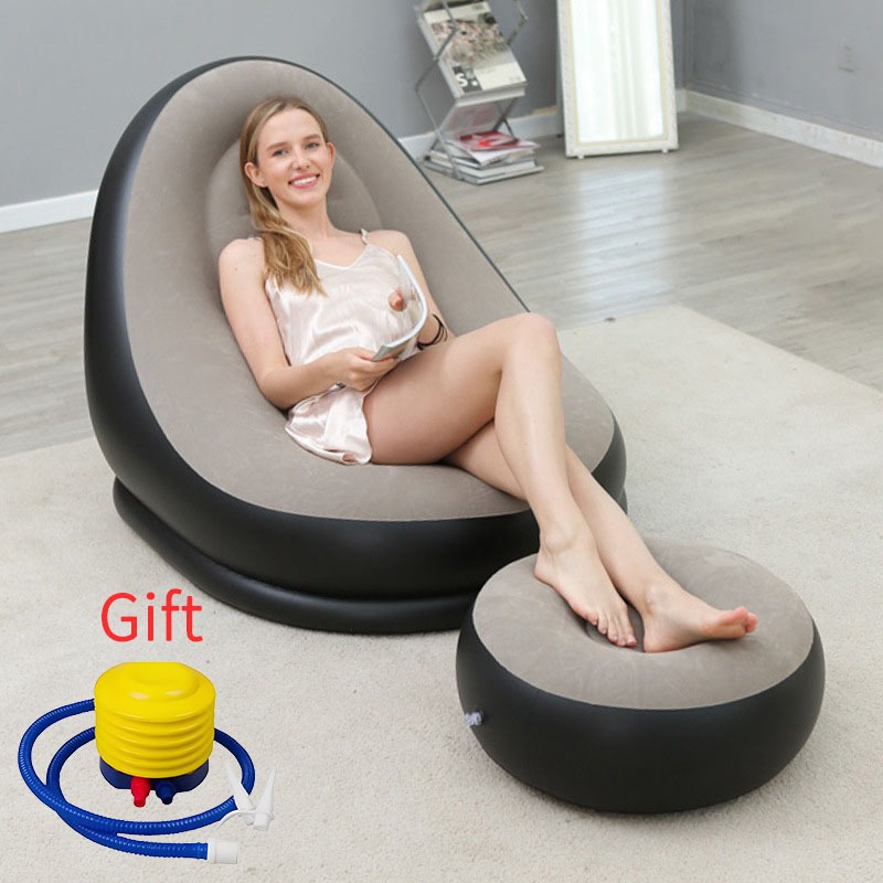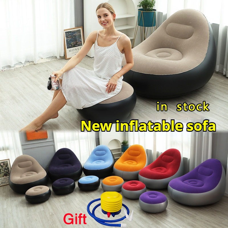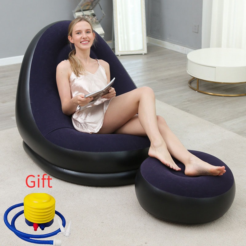 COD Lazy Sofa Inflatable Folding Recliner Outdoor Sofa Bed with Pedal Comfortable Flocking Sofa