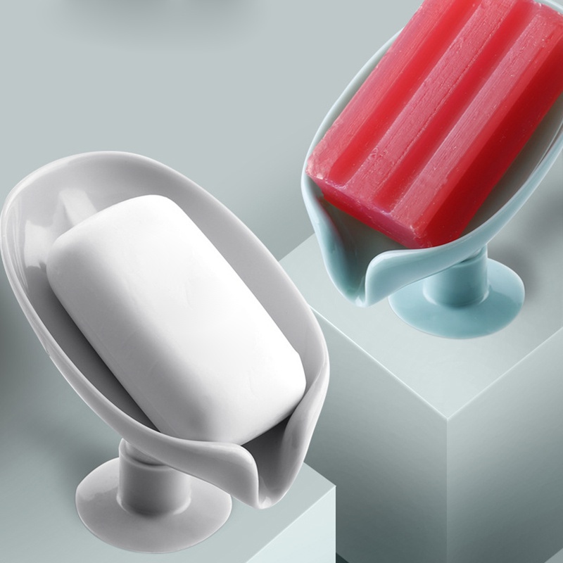 Leaf Shaped Drain Soap Box Stand Creative Suction Cup Soaps Holder Bathroom Storage Rack Rotatable Punch-free Sponge Tray