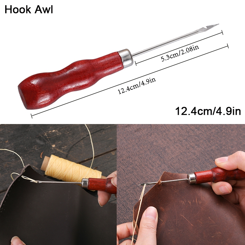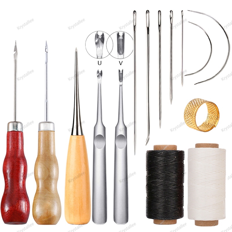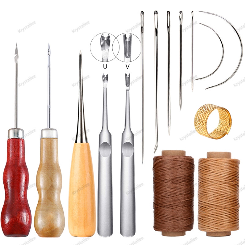 Leather Sewing Kit - Handmade Groover Punching Tool Kit Stitching Needles Awl Wax Thread Tools for Upholstery Shoe Repair DIY