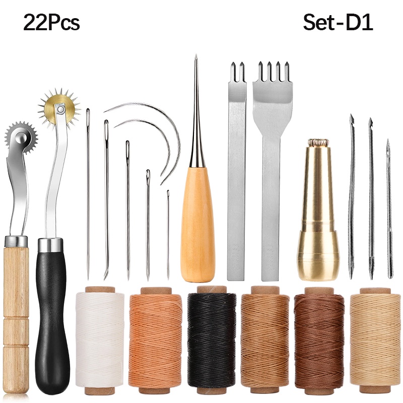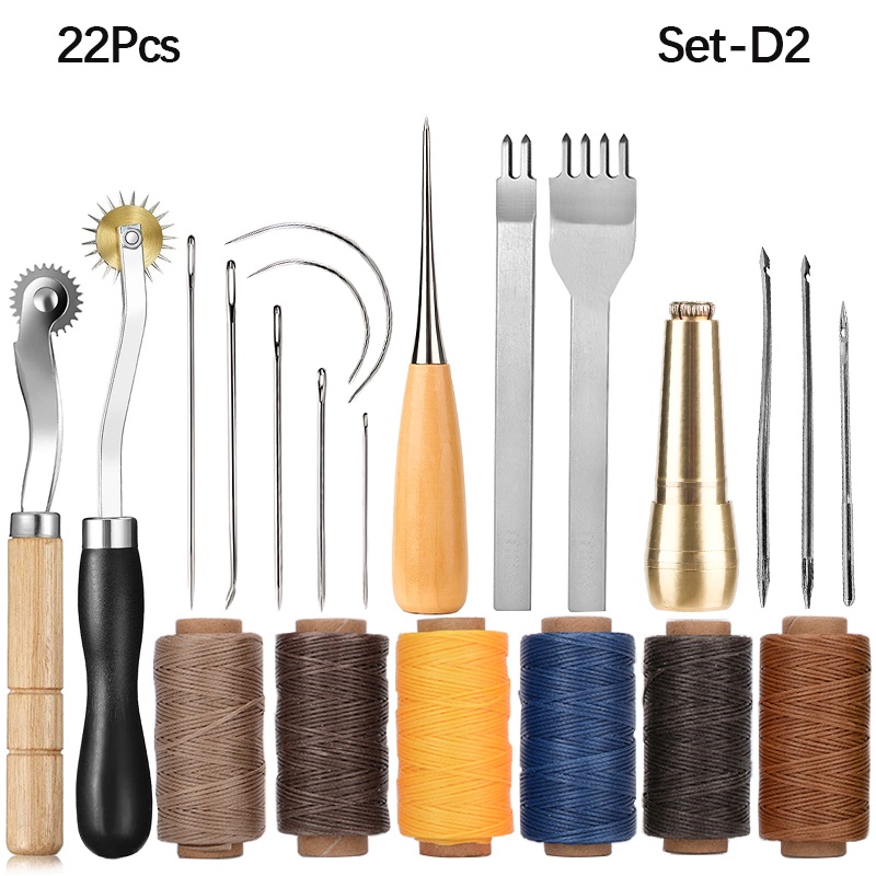 Leather Sewing Needles Waxed Thread Kit Handmade Stitching Tool For DIY Leather Craft Punch Chiseles Awl Needles