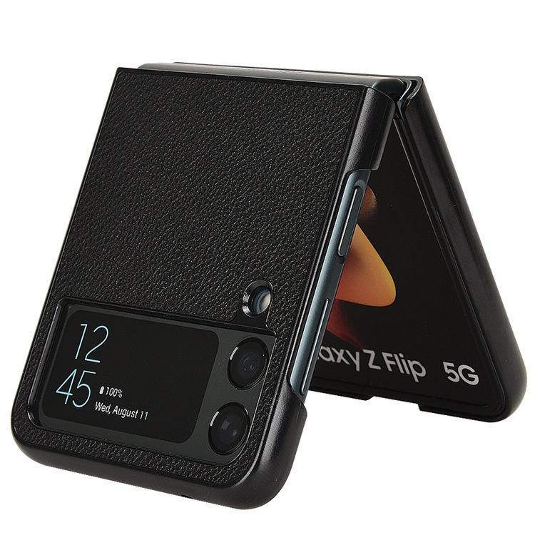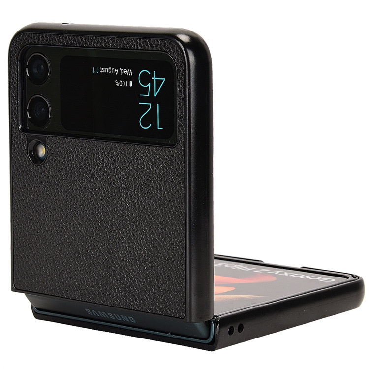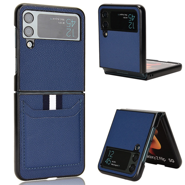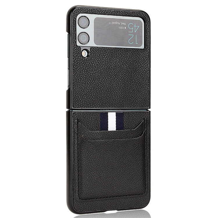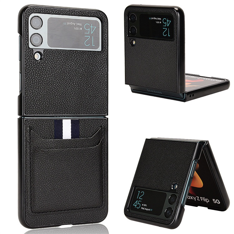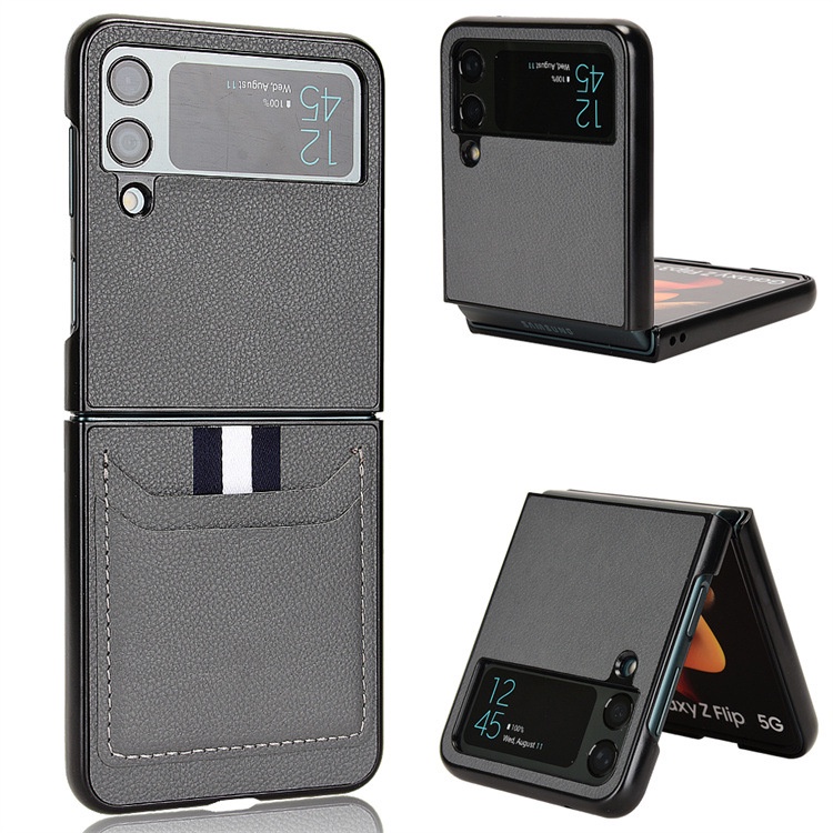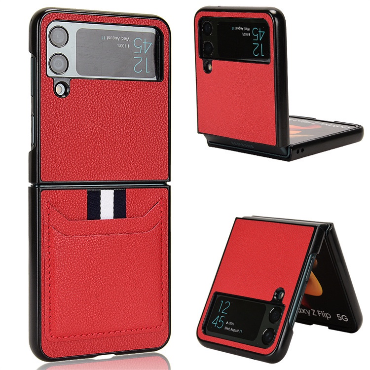 Leather Wallet Card Slot Holder Folding Case For Samsung Galaxy Z Flip 4 5G Case Lychee Grain Leather Hard Cover with Card Holder Cases