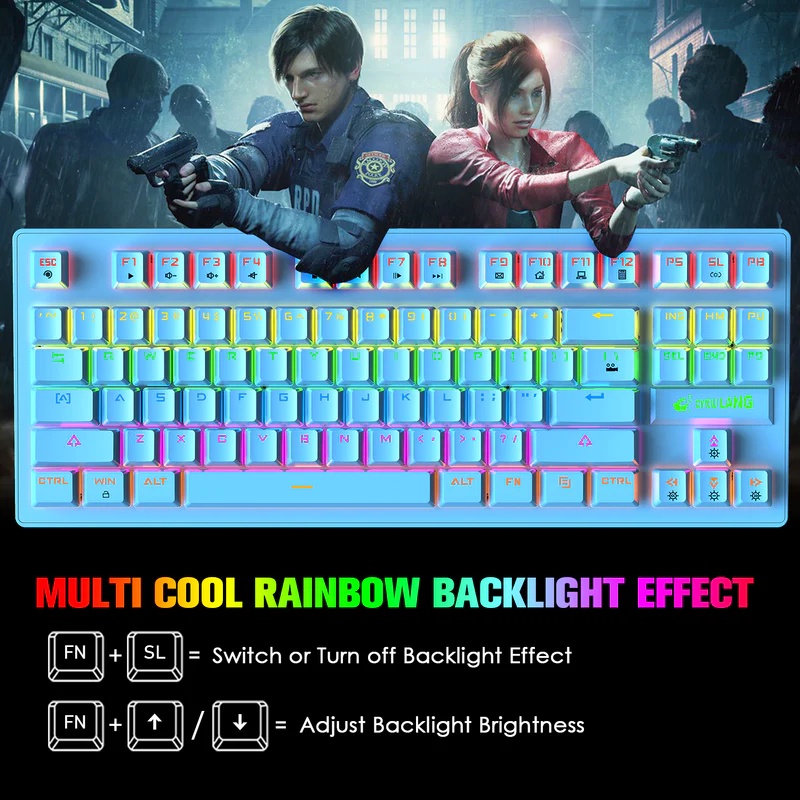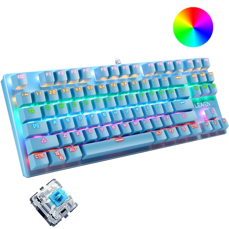 Leaven K550 87 keys Rainbow Backlit Wired Keyboard with Blue switch mechanical keyboard