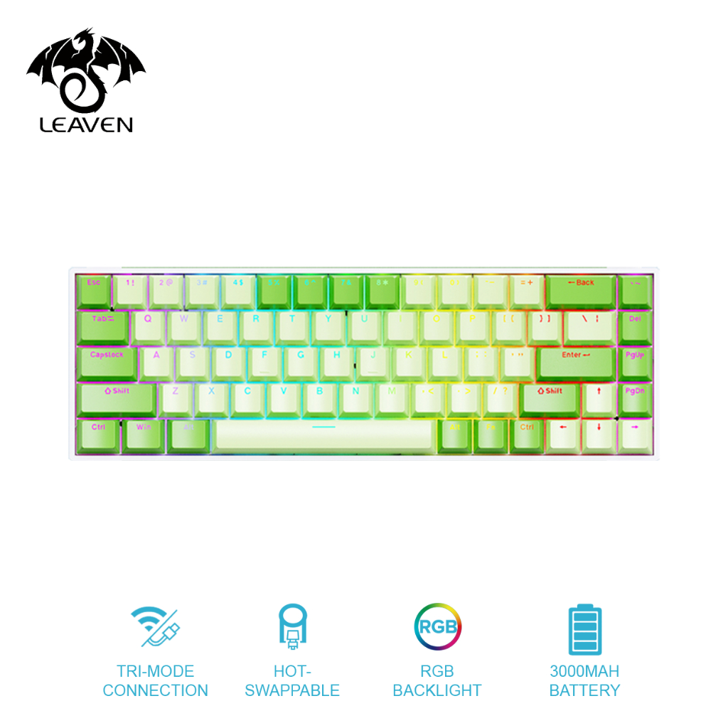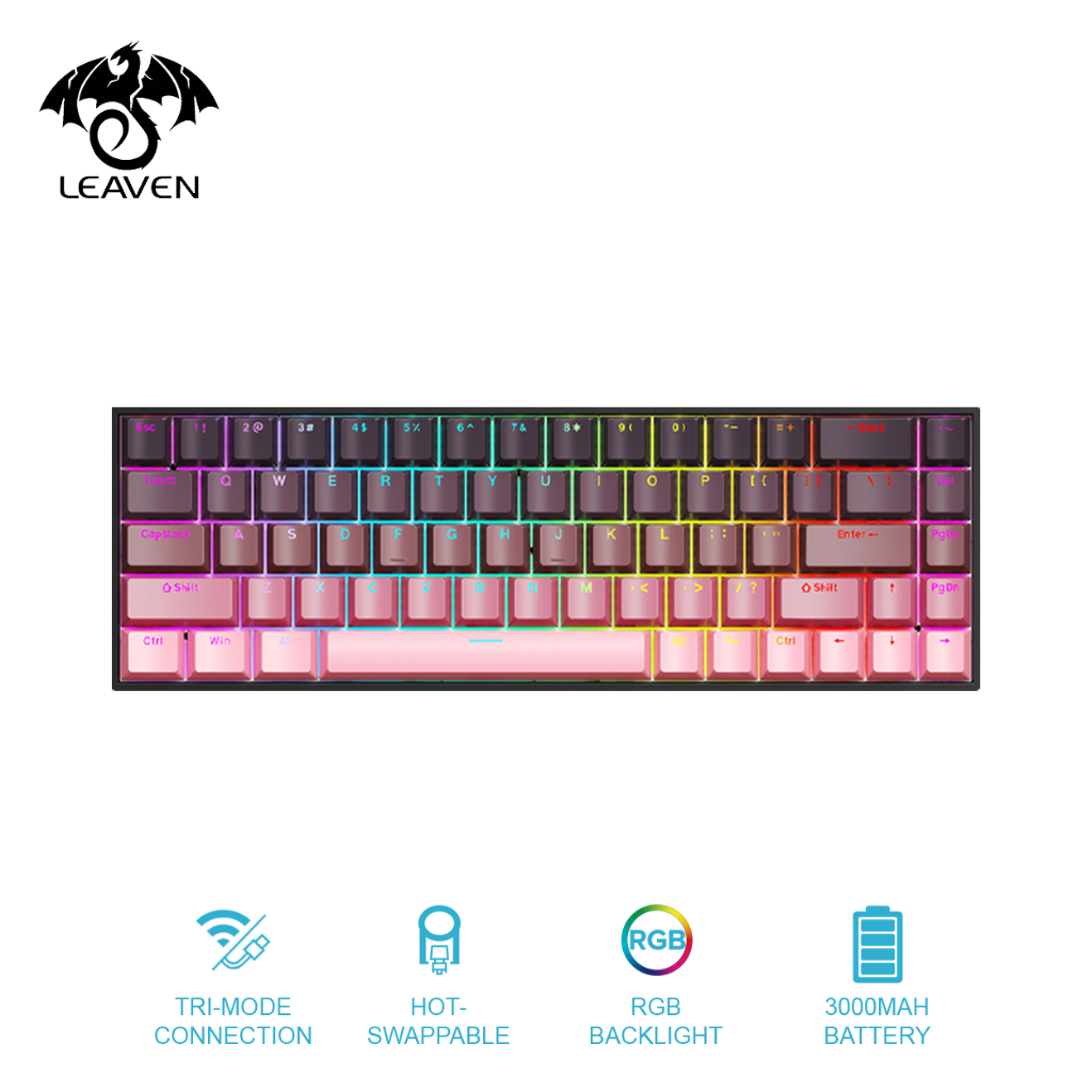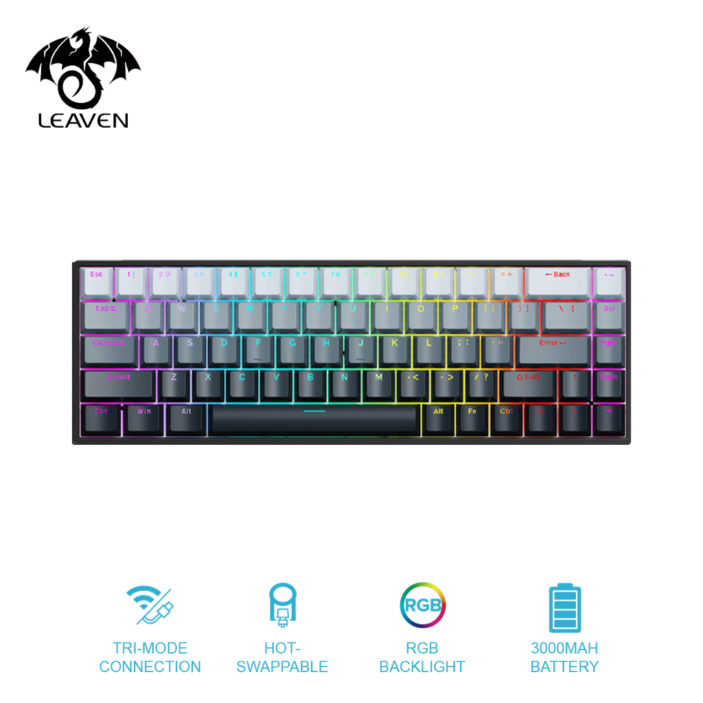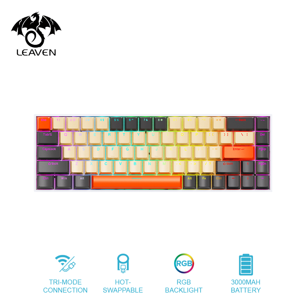 Leaven K68 68% Keys Tri-Mode RGB Hot-Swappable Mechanical Gaming Keyboard