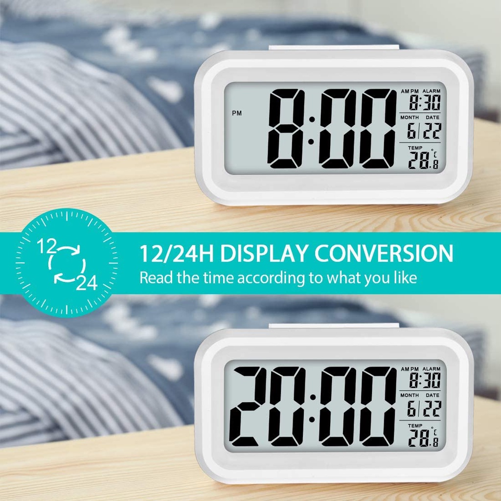 Led Display Digital Alarm Clock Battery Operated Smart Night Light Easy Operation Clock