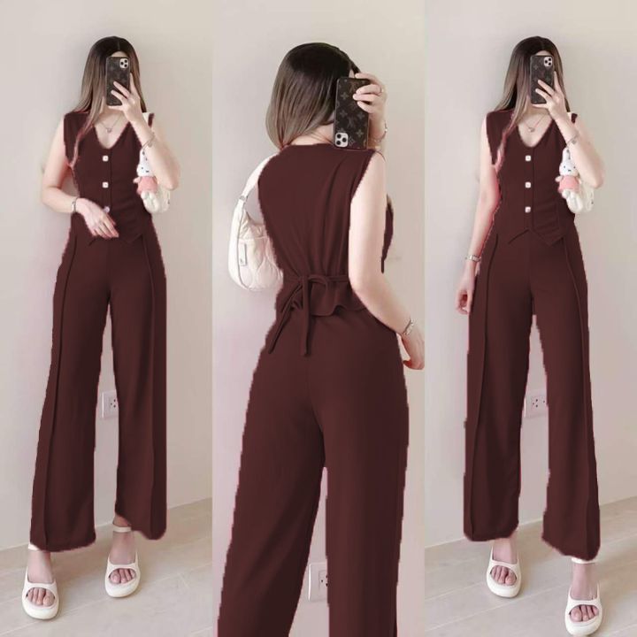 BSD Best Seller Prema Vest Top and Pants Terno/Coodinates w/ Pockets-Summer cool suit