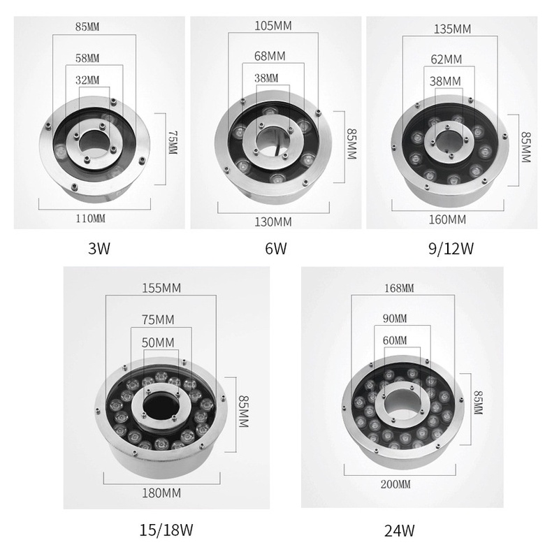 Led Fountain Light AC/DC12V 24V Waterproof 6W/9W/12W/15W Underwater Light Ip68 RGB Circular Spotlight Garden Pool Decor Lamp Underwater Lights Fountains