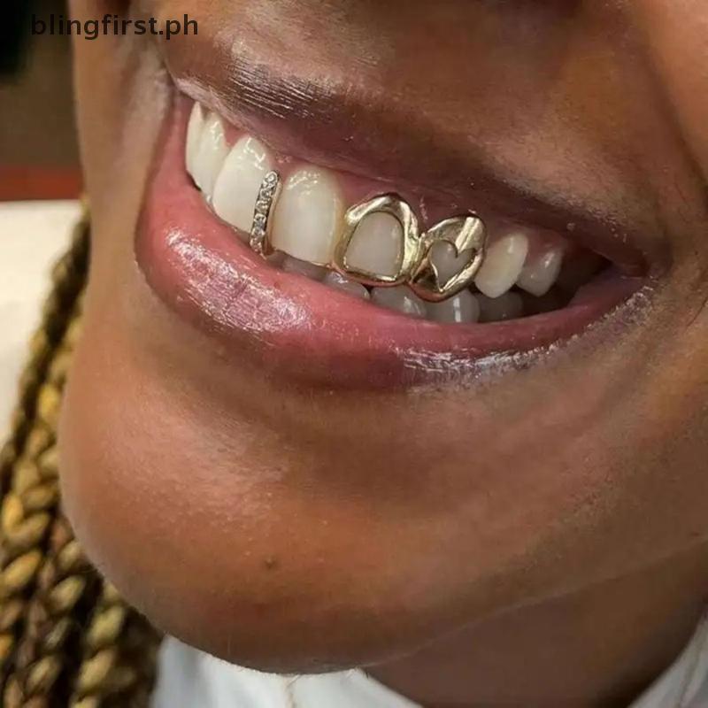 [BFI] 1 Piece Gold Color Daily Wearable Tooth Jewelry Dental Grillz Hip Hop Hollow Heart Tooth Grillz For Women [PH]
