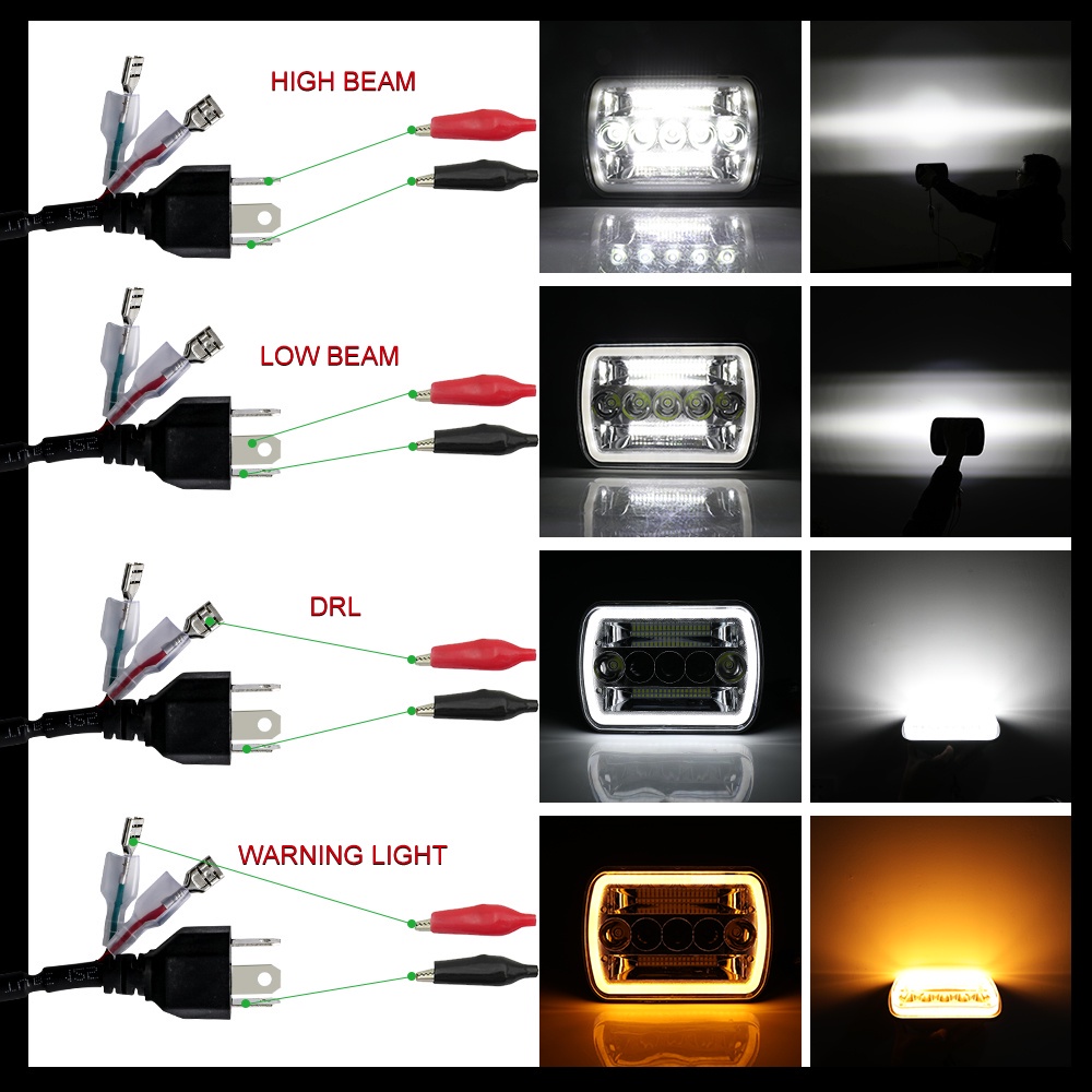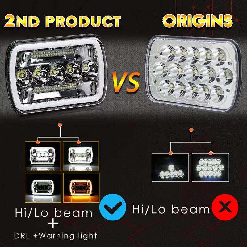 Led Hi/Low DRL Headlight Turn Signal Light Amber Square Headlight 5X7 Inch Lights For Car Truck