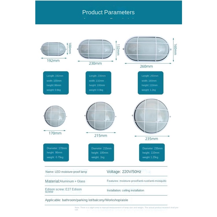 Led Moisture-Proof Lamp Kitchen Bathroom Bathroom Outdoor Unit Waterproof Glass Industrial Style Oval Wall Lamp/Waterproof Outdoor Oval Wall Light / Retro Wall Lamp