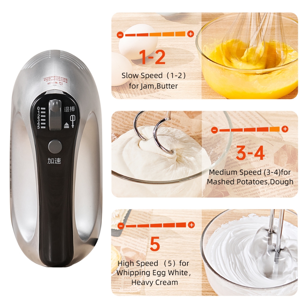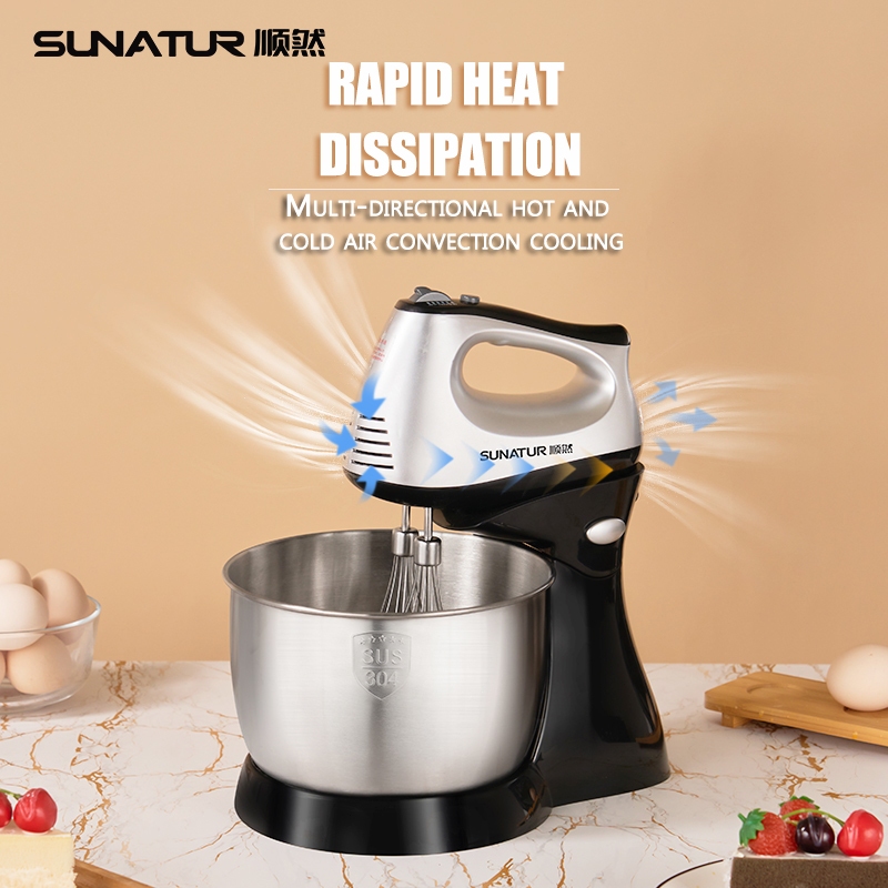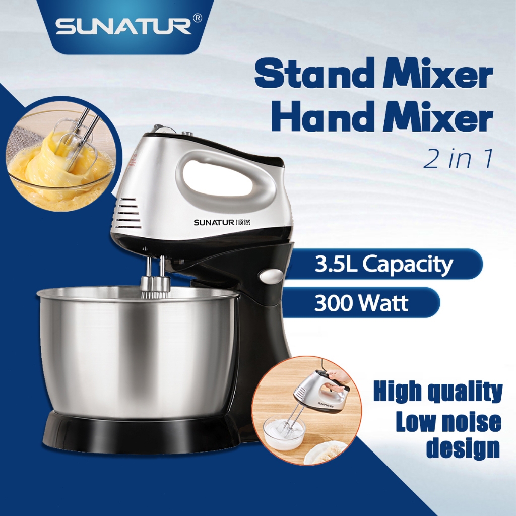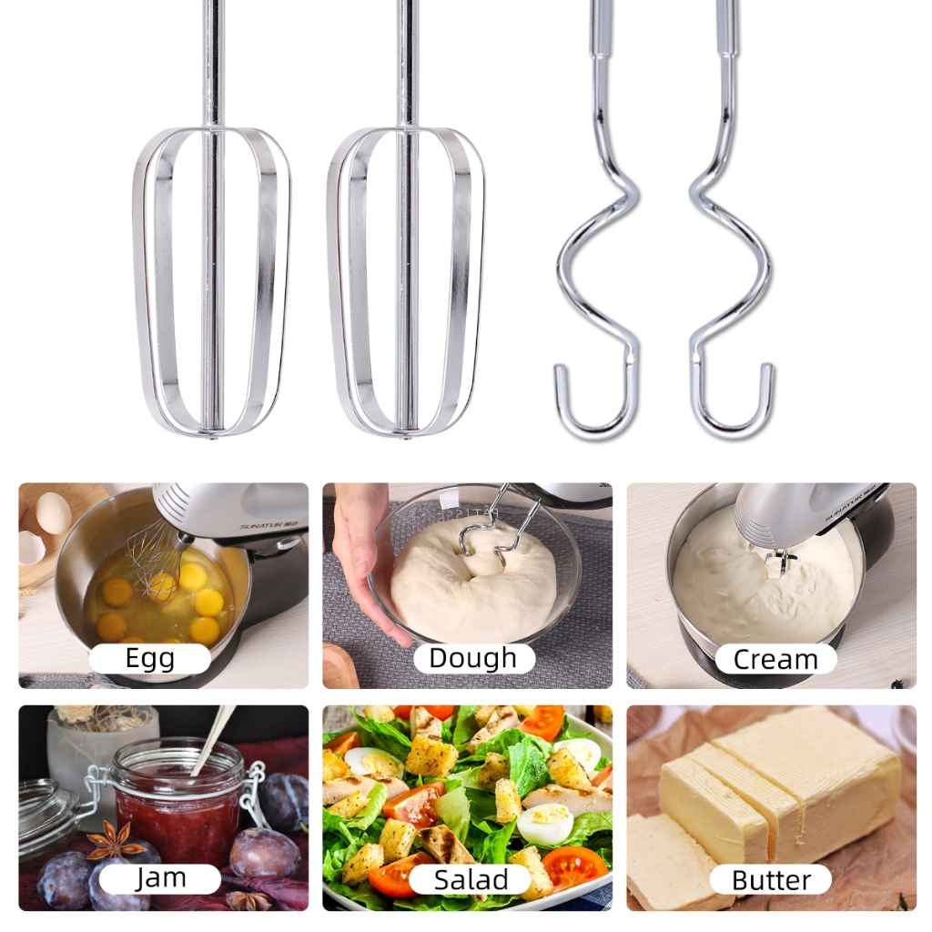 SUNATUR 300W Electric Hand Mixer 5-Speed,Stainless Steel Whisks,Storage Base,For Baking