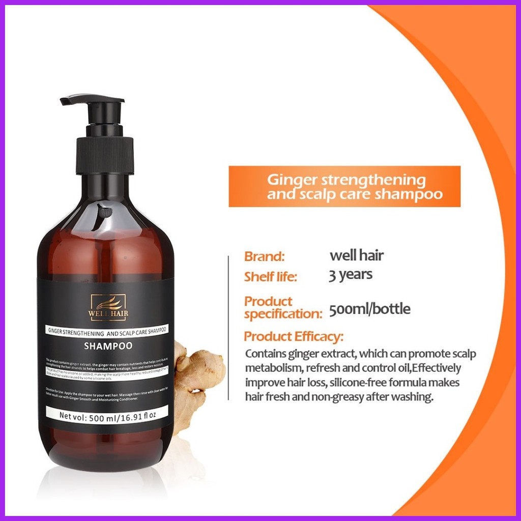 ✒ ◿ Well Hair Natural Ginger Essence Scalp Care Shampoo Or Conditioner Sulfate Free 500ml Each