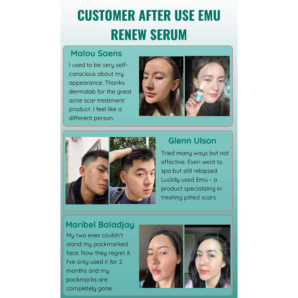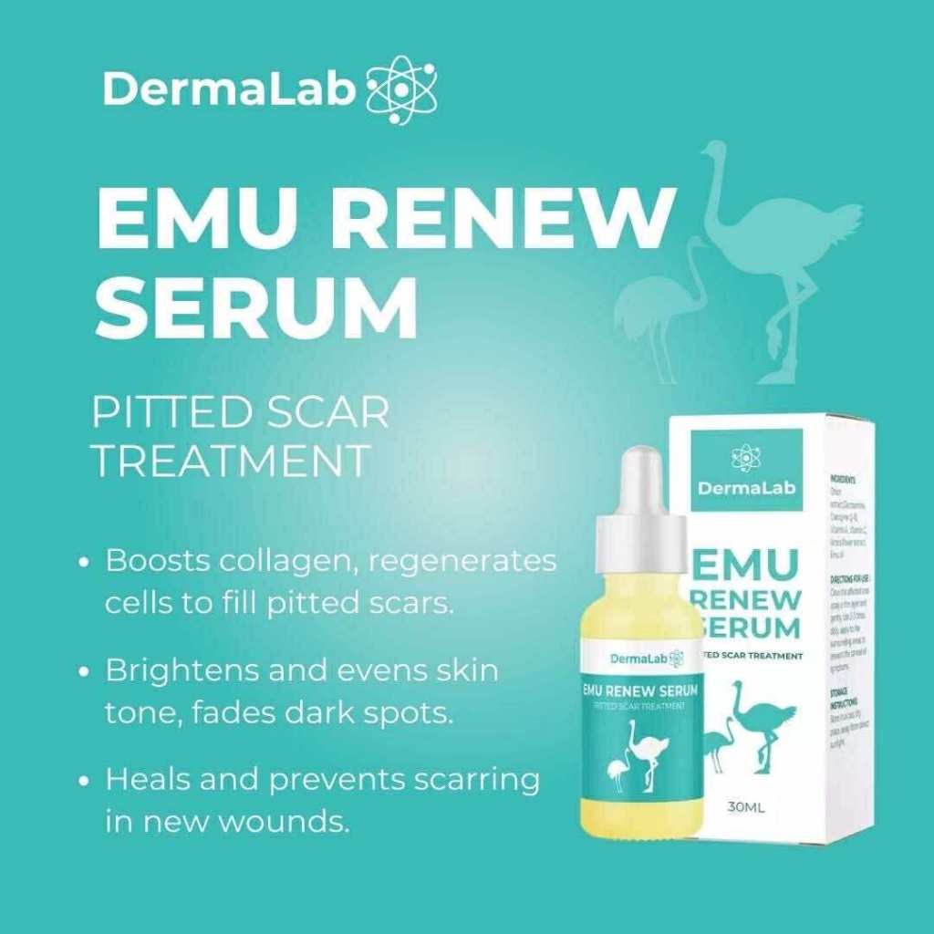 DermaLab Emu Renewal Serum For Pitted Scar Treatment, Moisturizing, Anti-Inflammatory 30ml FDA APP.