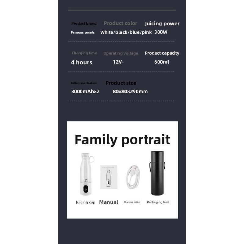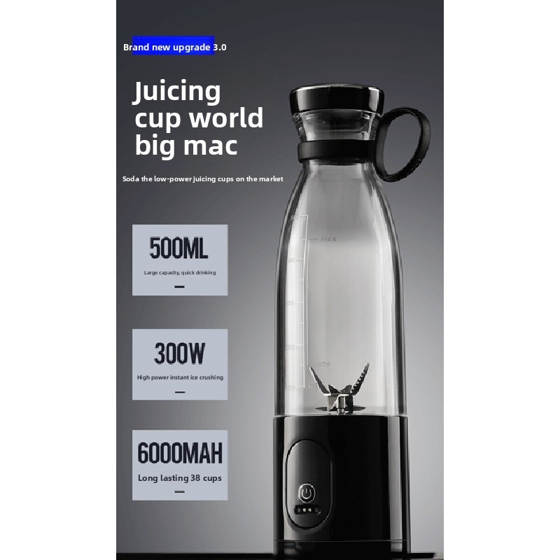 Juicing Cup, Portable Juicer, 500ML Food Grade PCTG Material, Magnetic Charging IPX7 Grade Waterproof