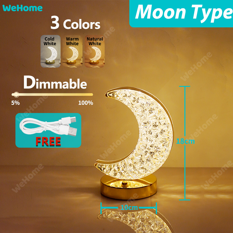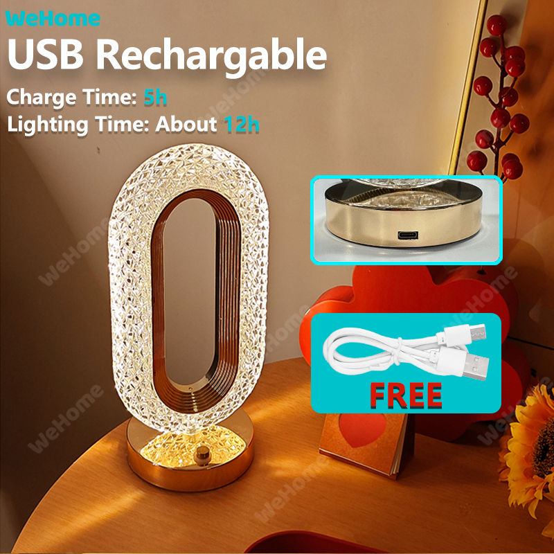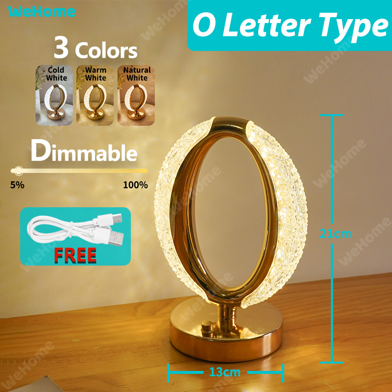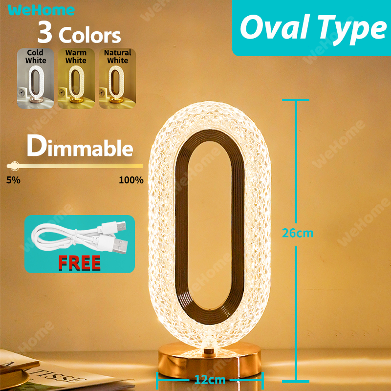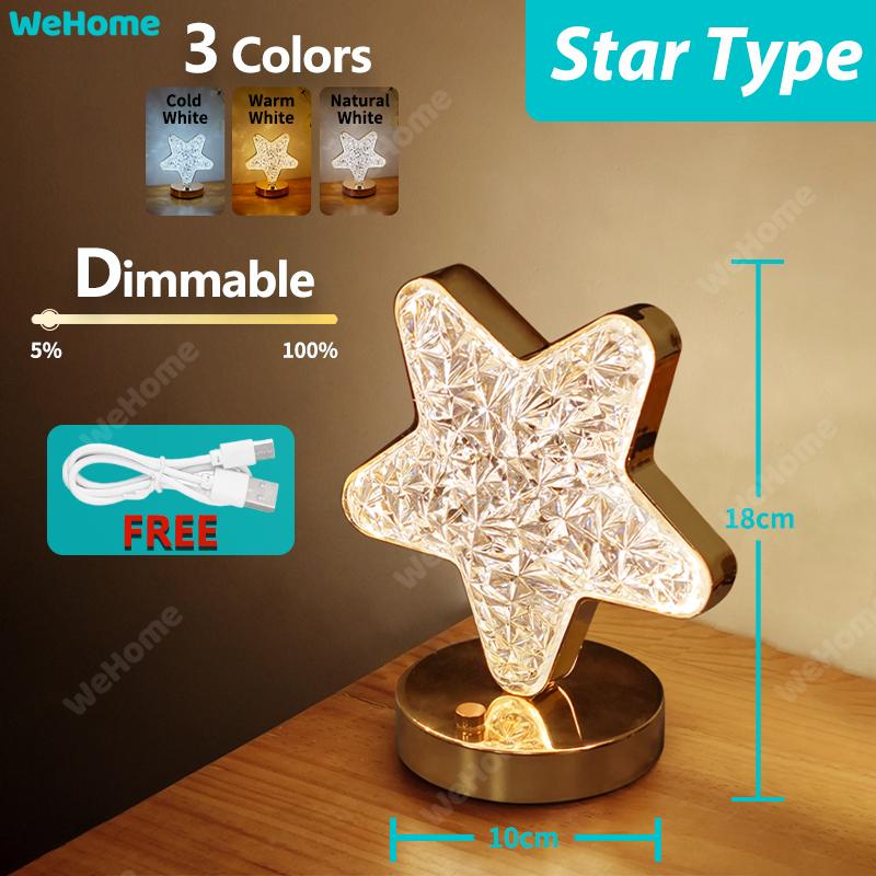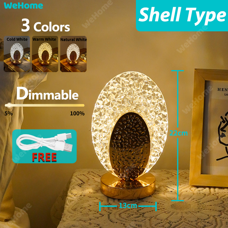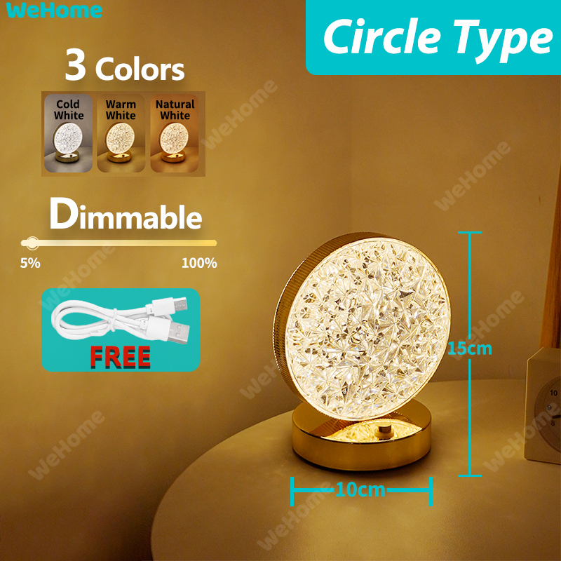 Led Touch Table Lamp Crystal Diamond Night Light 3 Color Dimmable USB Rechargeable Desk Light