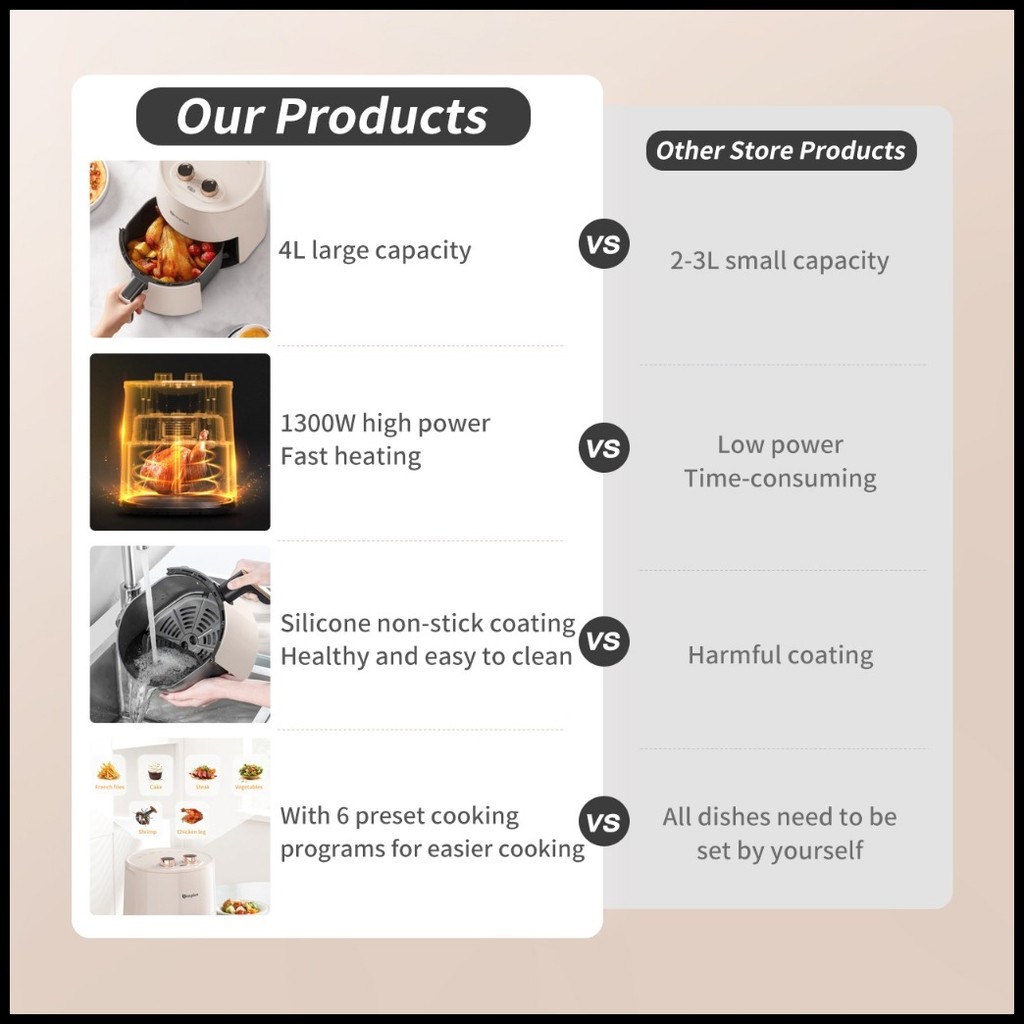 ❡ INSSA x Simplus Air Fryer 4L Multi-functional Fryer Electric Oven Oil Free Non Stick