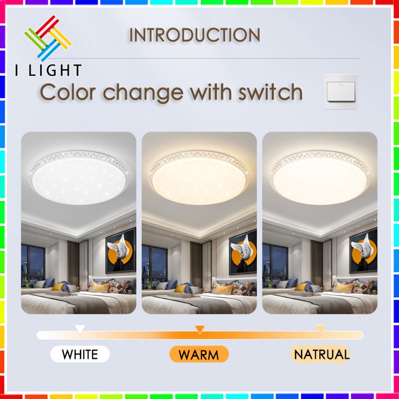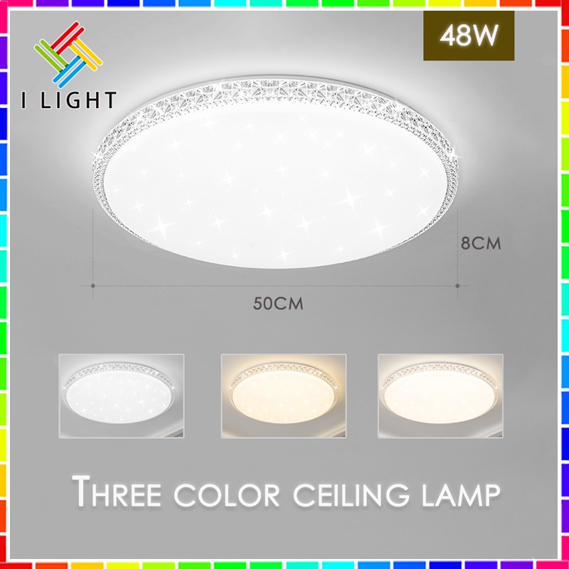 Led round modern ceiling lamp 50cm/48W Tri color high brightness bedroom ceiling lights