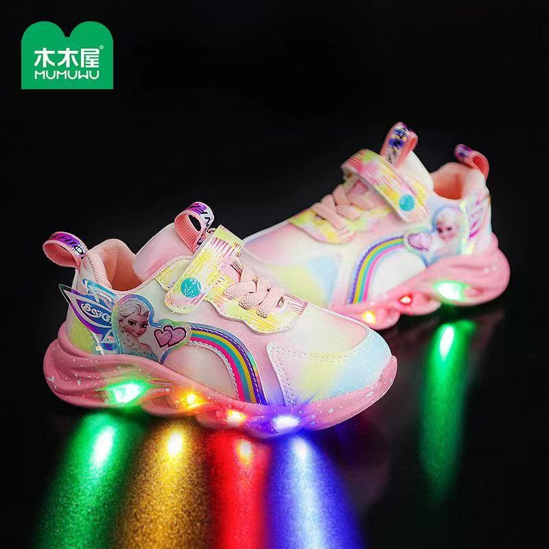 Maxi Led sneakers shoes for kids girls light up rubber with elsa princess shoes for kids size25-35