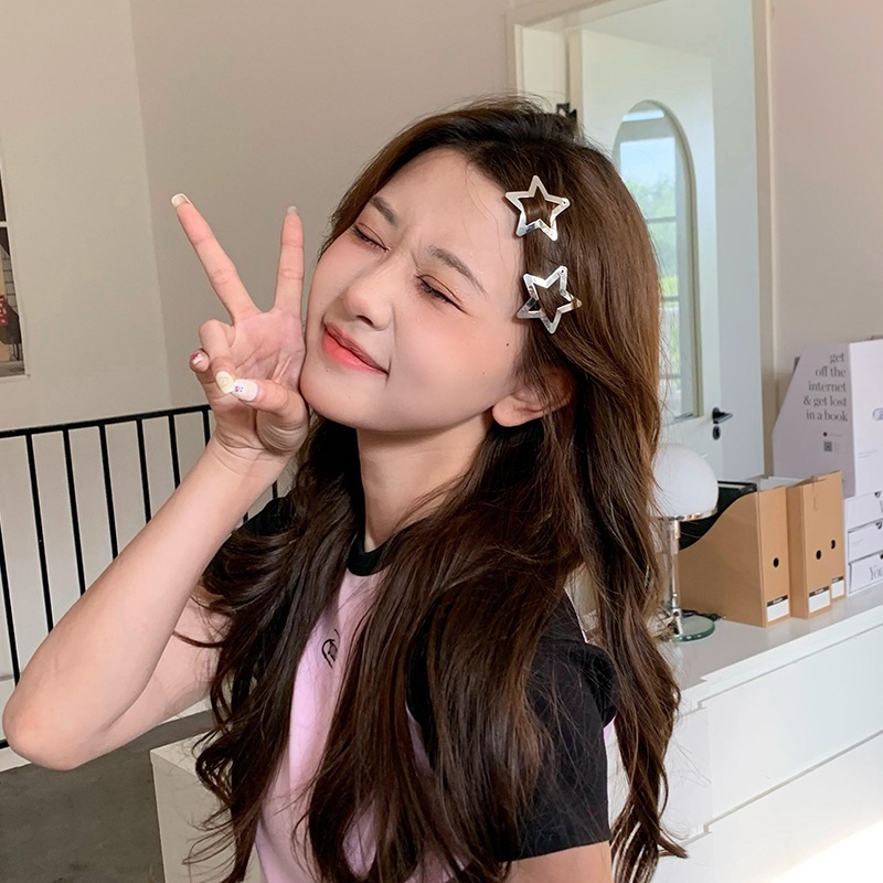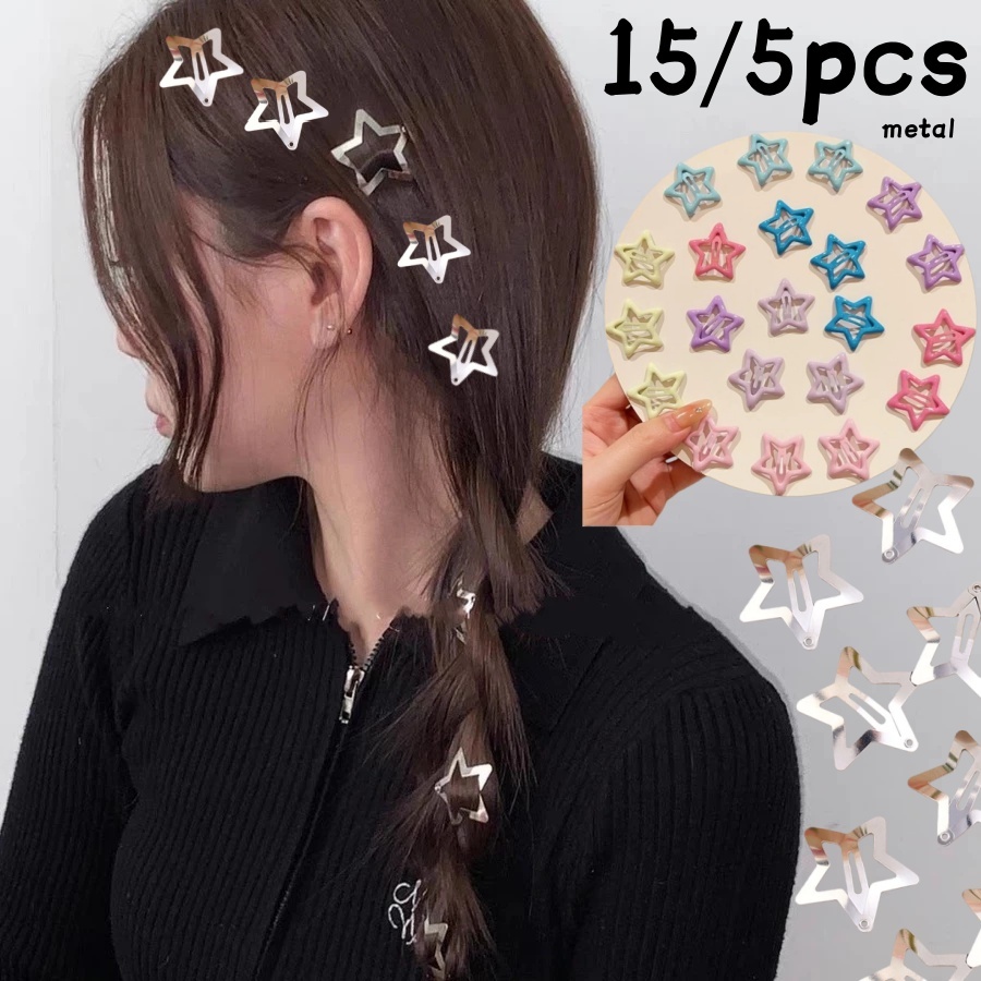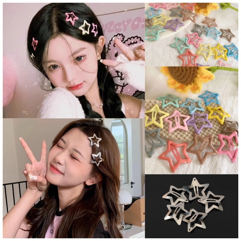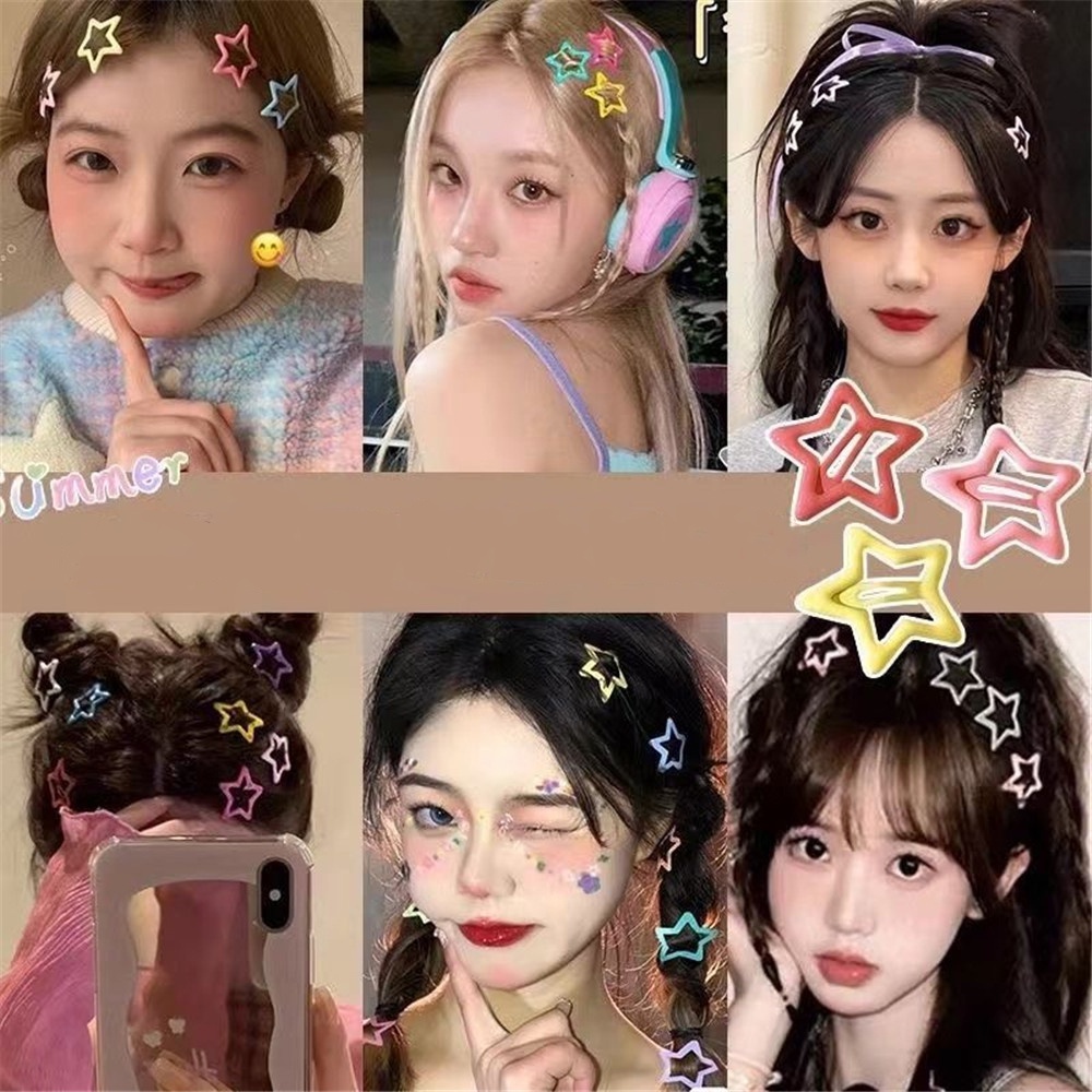 Simple Metal Star Hair Pins Small Cute Colorful Clips Girls Y2K Sweet Star Braid Hair Accessories