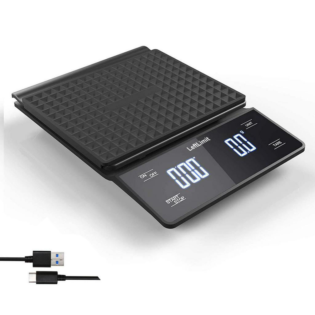 LeftLimit Rechargeable Coffee Scale with Timer 3kg/0.1g High Precision Pour Over Drip Espresso Scale