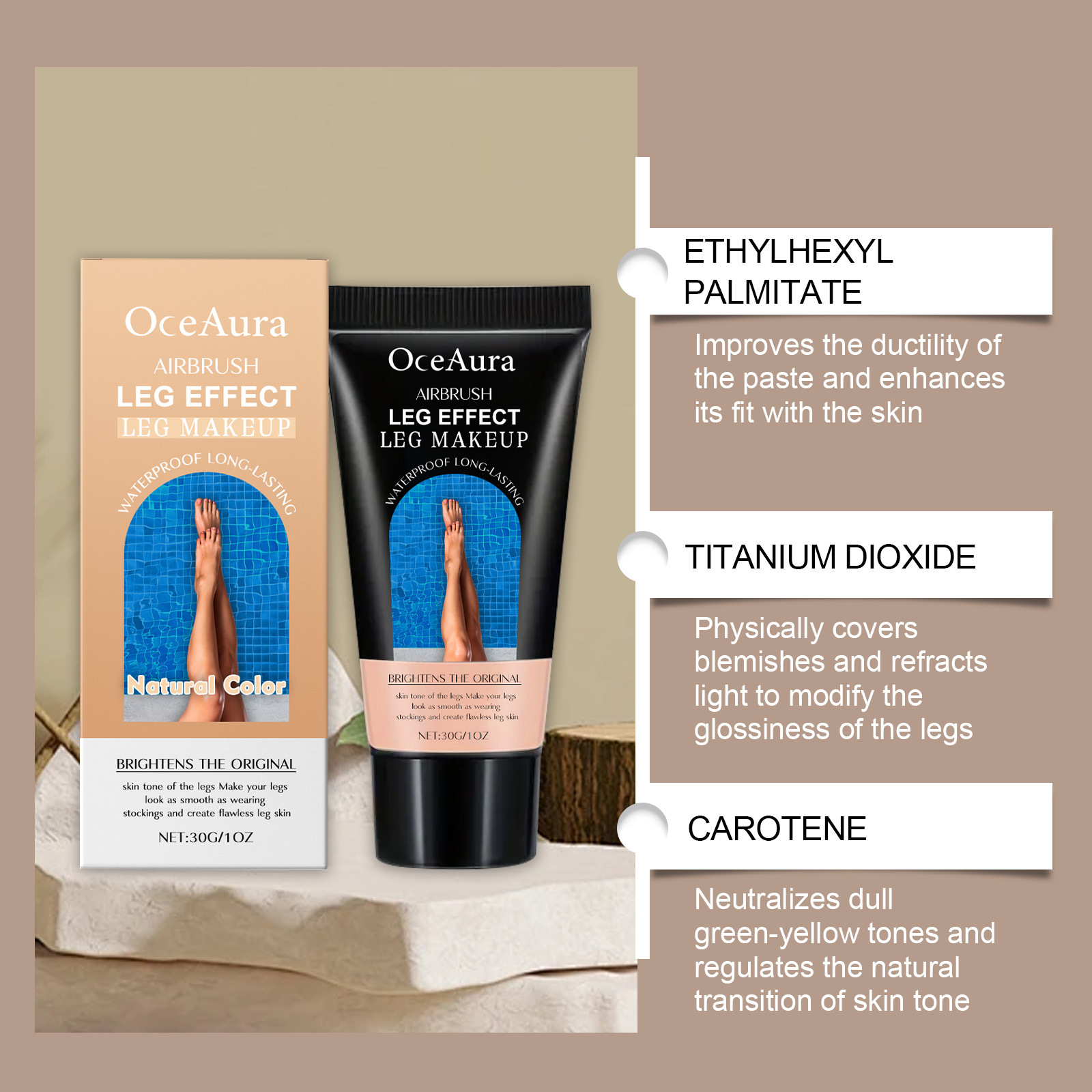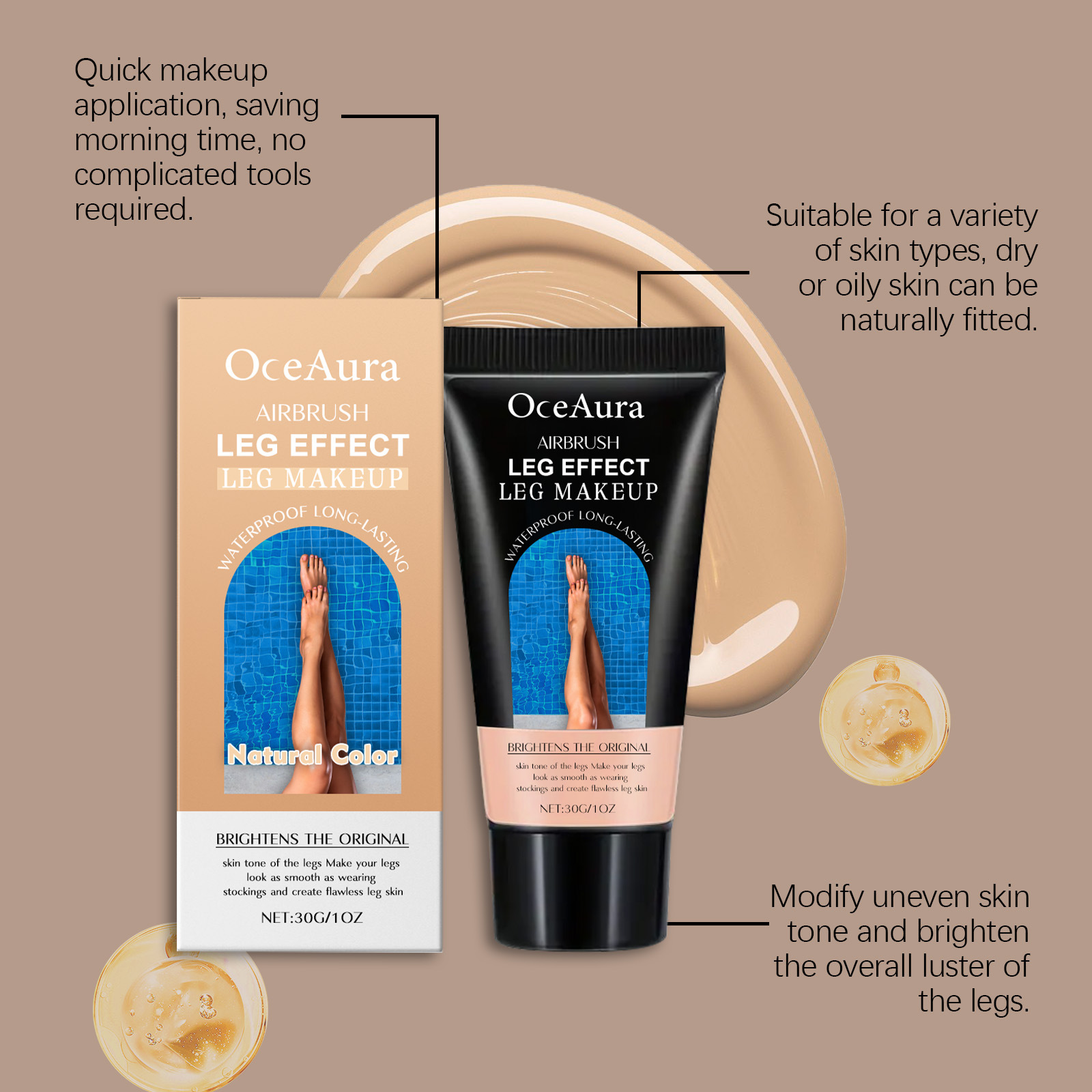 Leg Makeup, Waterproof Concealer for Veins, Scars, Tattoos, Flawless Finish, Non-Transfer Lotion, 30g (Natural Color)