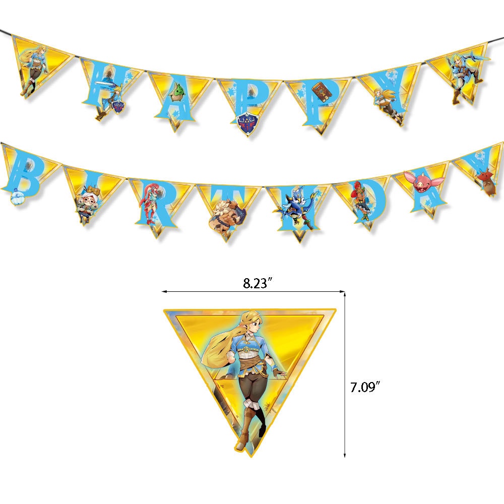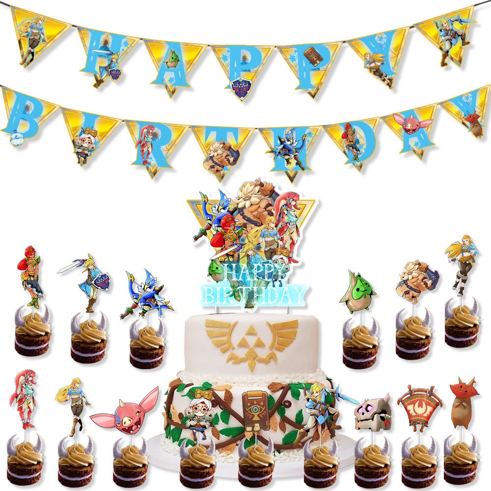 Legend of Zelda Birthday Party Decorations Happy Birthday Banner Balloons Cake & Cupcake Topper for Zelda Theme Birthday Party