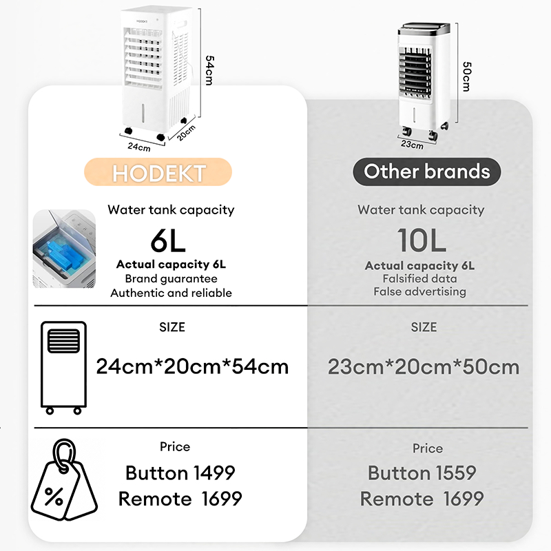 HODEKT Air Cooler Fan 6L/12L Air Conditioning Fan Air Filter Inverter Three-Speed Regulation