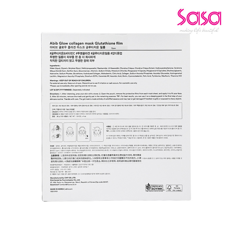 Abib Glow Collagen Mask Glutathione film (4pcs)