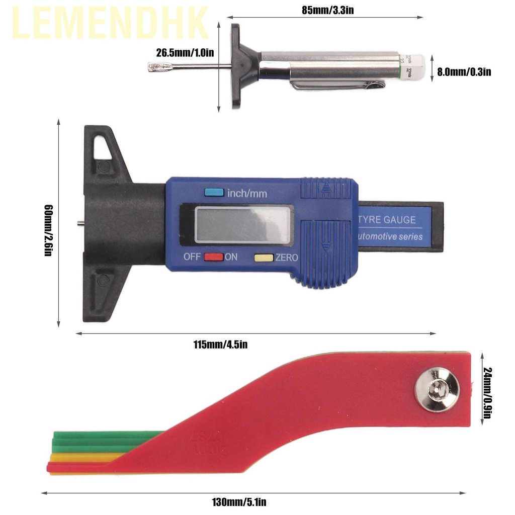Lemendhk Brake Pad Depth Gage Digital Tire Tread Gauge Measurement Tool for Car Truck