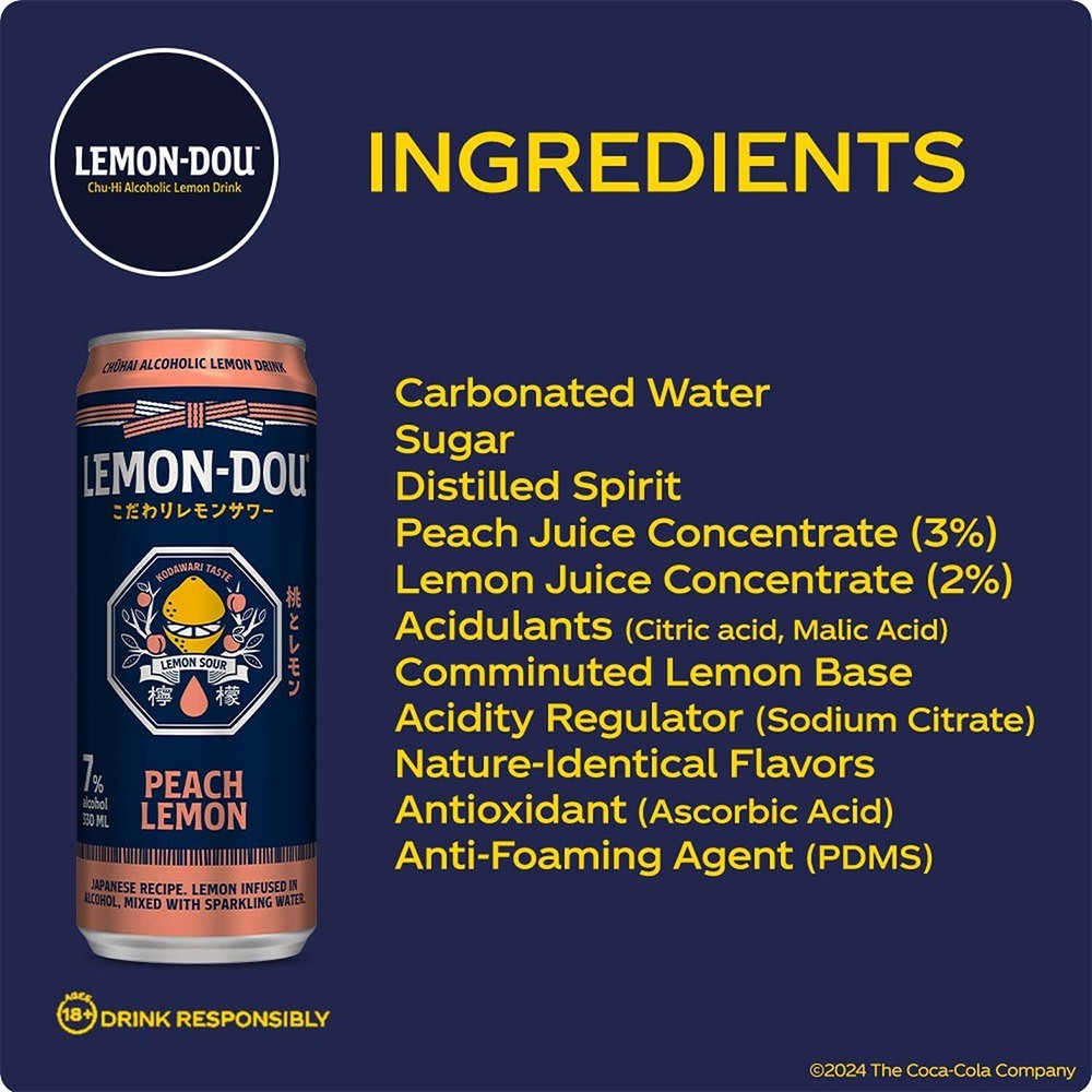 Lemon-Dou Peach Lemon 330mL 7% Alcohol Chu-hi - Pack of 12
