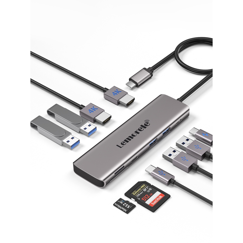 Lemorele TC91 USB-C Hub 10-in-1 multi-port Adapter 4K HDMI 3*USB 3.0 SD/TF compatible for MacBook iPad Switch PS4 Steam Windows