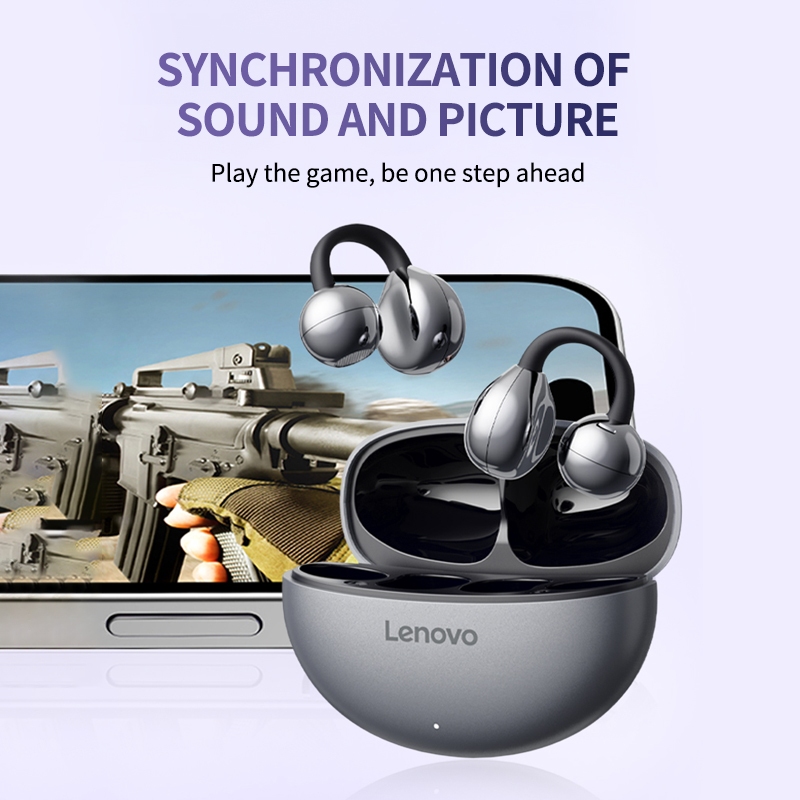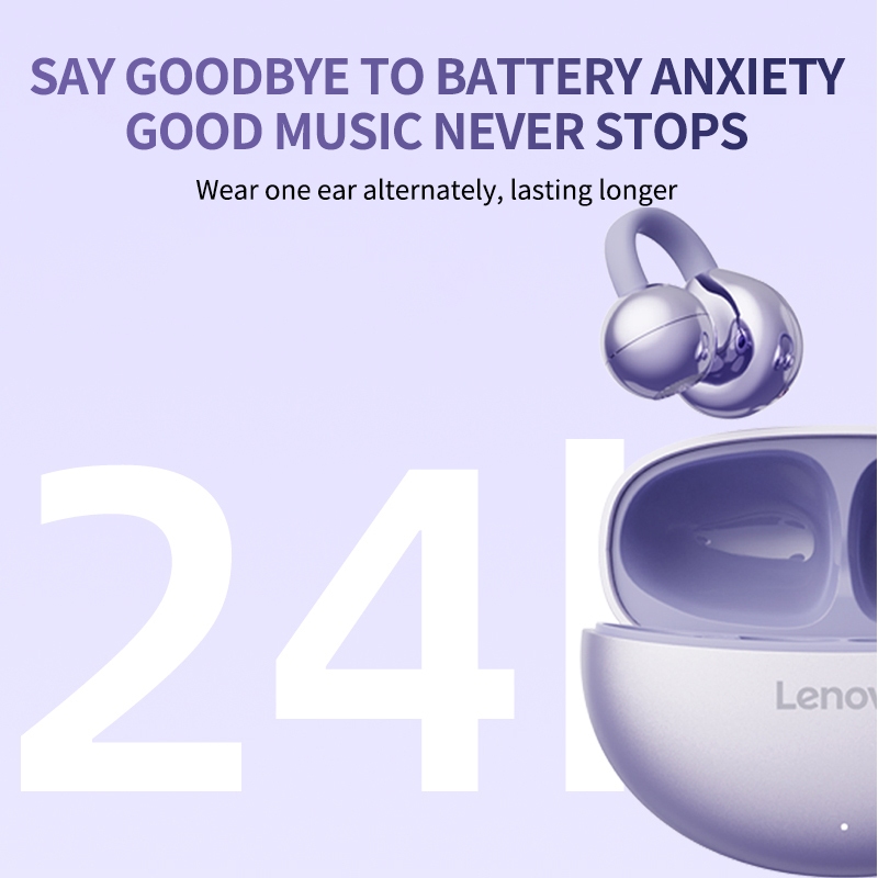 Lenovo Earbuds TA410 Wireless Earbuds TWS Ear Clip Type Earphone Bluetooth 5.4 Touch Control Long Battery Life with Mic