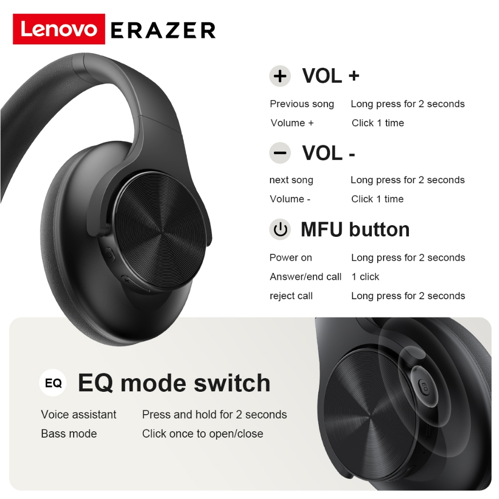 Lenovo Erazer G50 Wireless Headphone Bluetooth Foldable Headset with Built-in Microphone Earphone