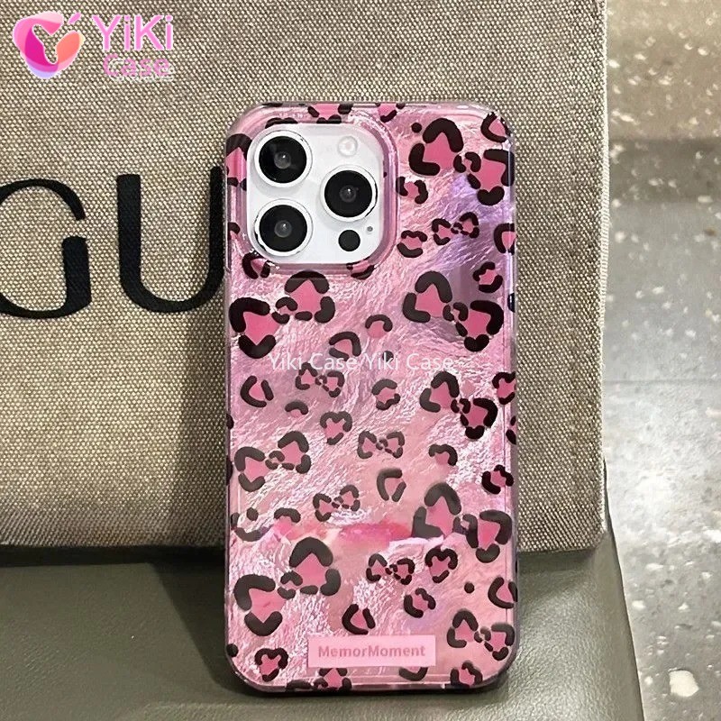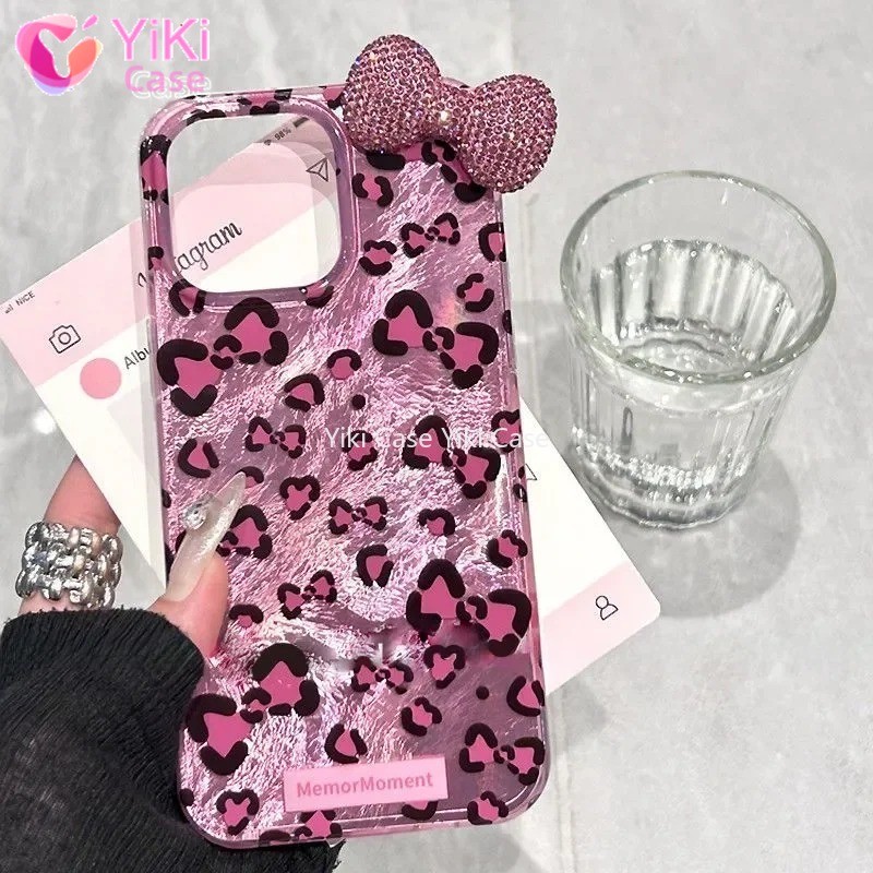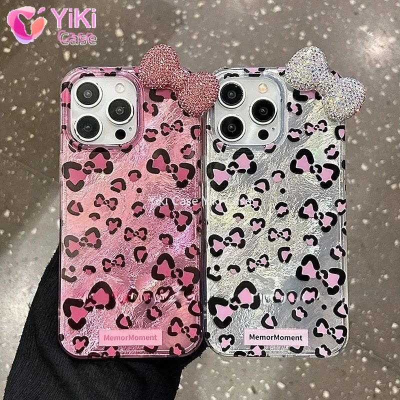 Leopard Print Hello Kitty Mirror Bow Strap Phone Case For iPhone 16 15 14 13 12 11 Pro Max XR XS MAX 7 8 Plus MINI Y2K Cover