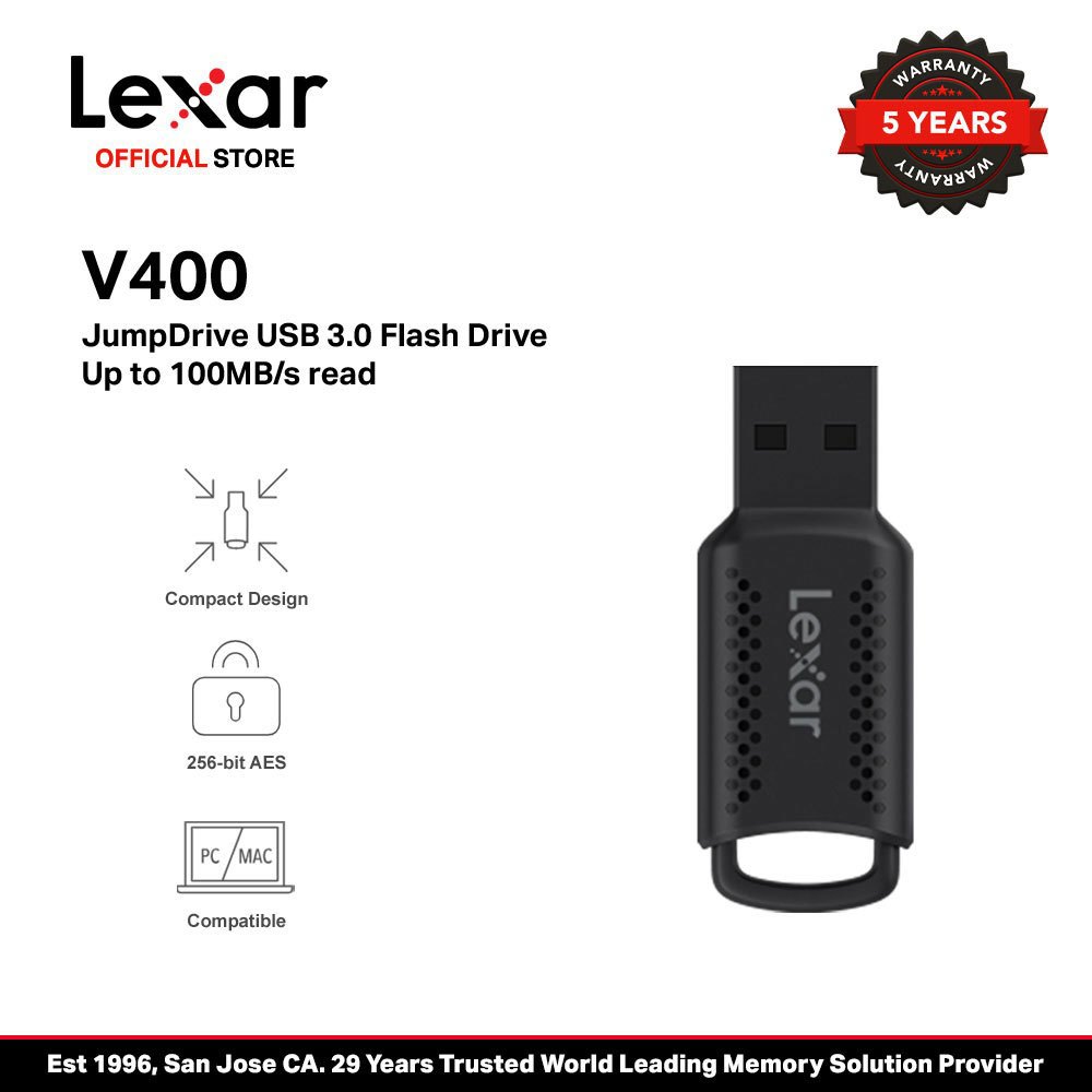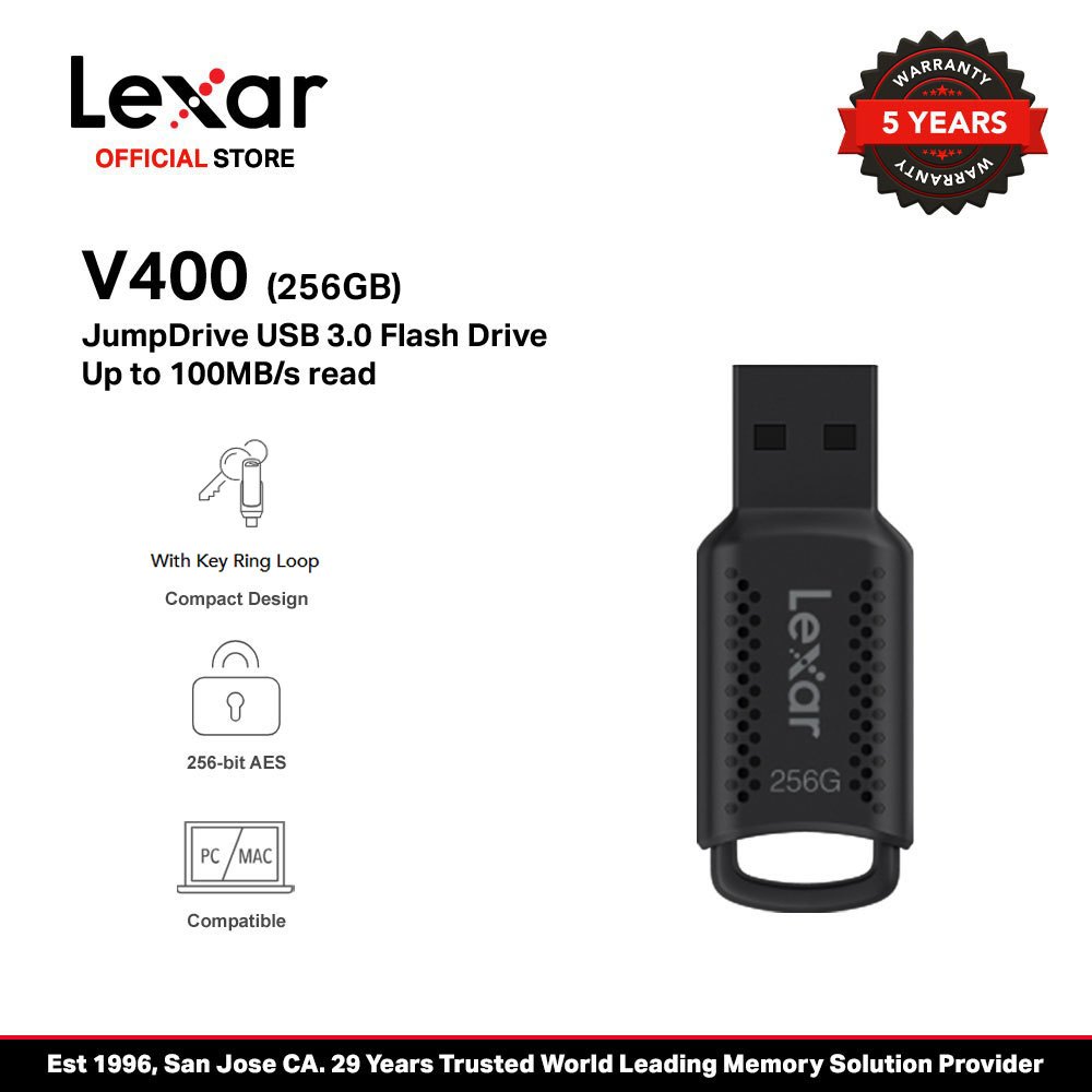 Lexar JumpDrive V400 64GB/128GB/256GB USB 3.0 256-bit AES Compact Flash Drive With Key Ring Loop