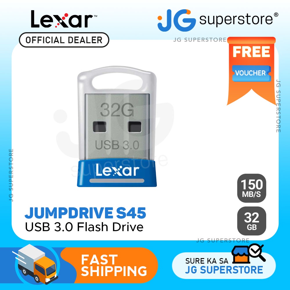 Lexar LJDS45-32GABAP JumpDrive S45 USB 3.0 32GB Flash Drive for Windows, Mac Systems