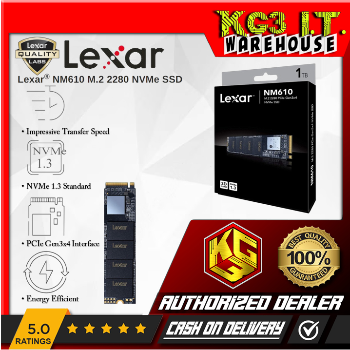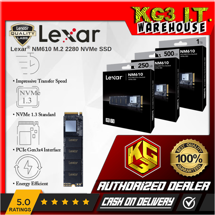 Lexar NM610 250GB 500GB 1TB M.2 2280 NVMe SSD - PCIe Gen3x4 Interpace, 2,100MB/s Read, 1,200MB/s
