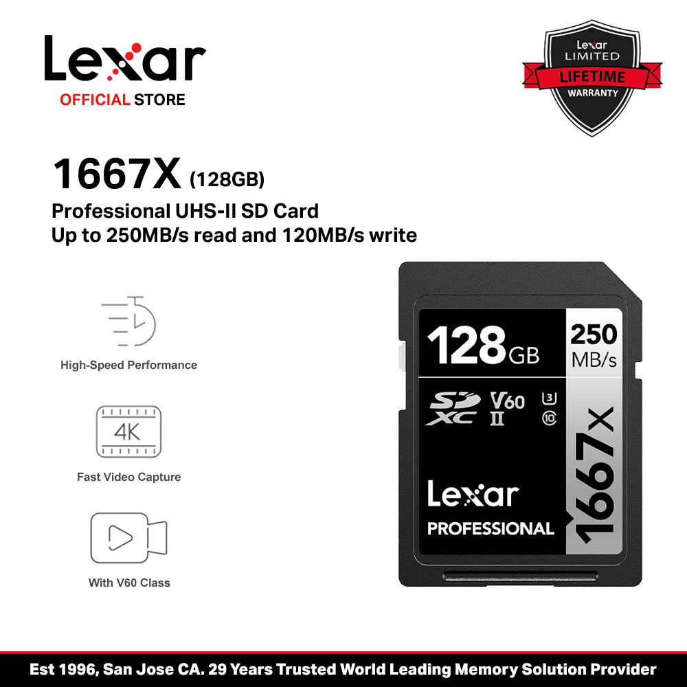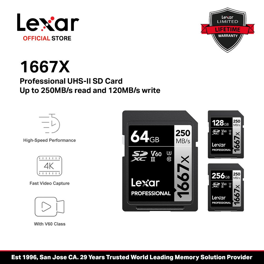 Lexar Professional 1667x 64GB/128GB/256GB SDXC UHS-II SD Card Silver Series