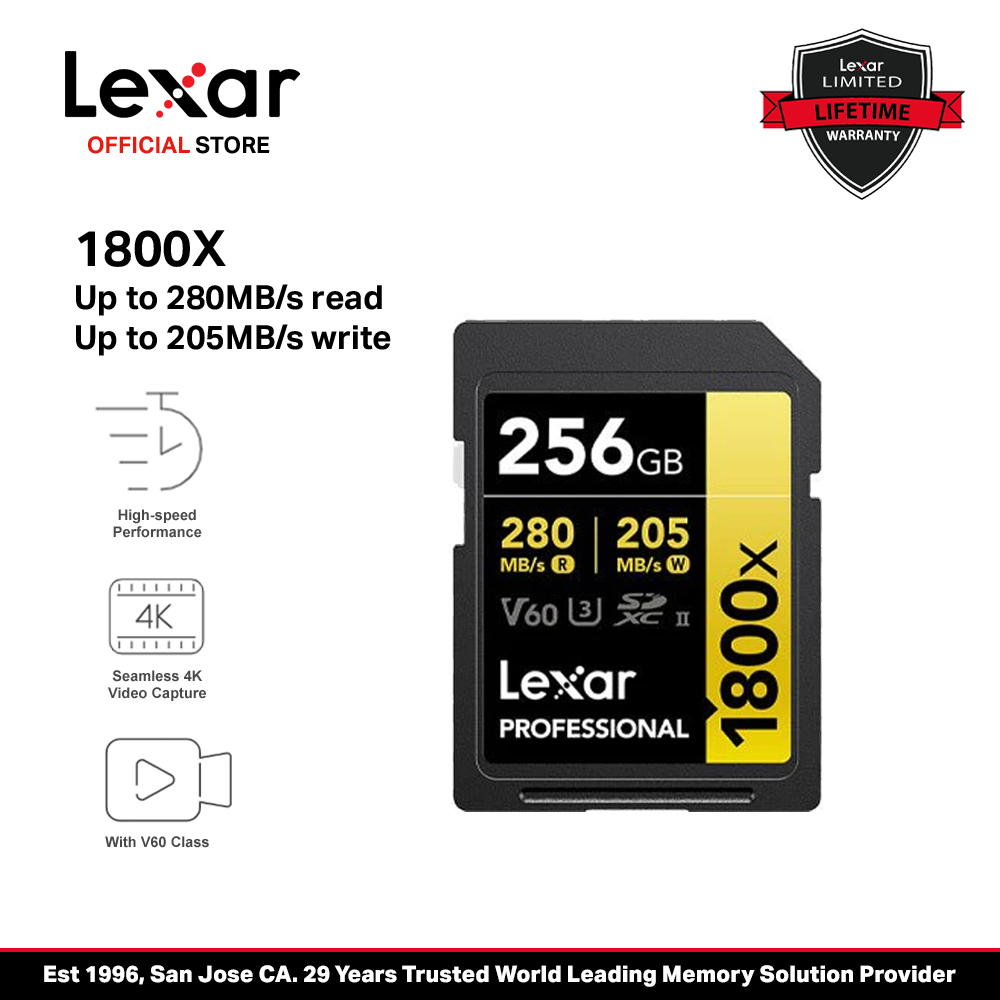 Lexar Professional 1800x 256GB/512GB SDXC UHS-II SD Card GOLD Series